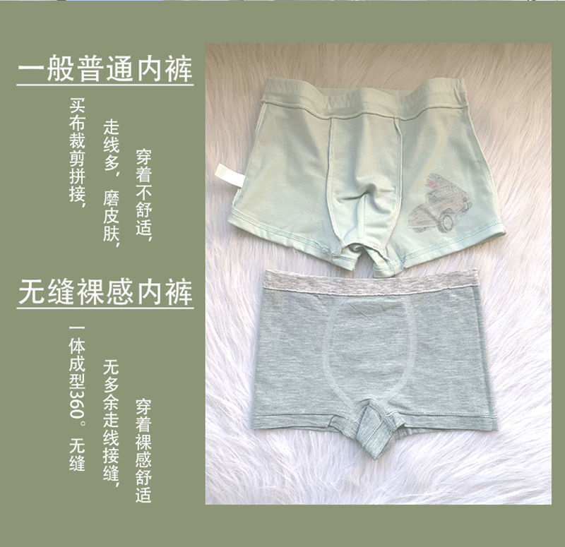 跨境一片式无缝无痕无感艾草抗菌大码平角裤男裸感莫代尔男士内裤RMB:10.99