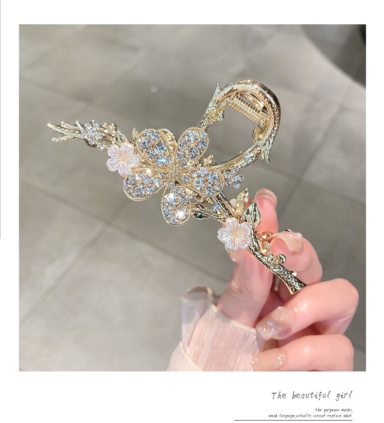 가지 모조 다이아몬드 꽃 대형 그립 클립 절묘한 머리핀 2022 새로운 고급 고급 머리 뒤 플레이트 머리 장식