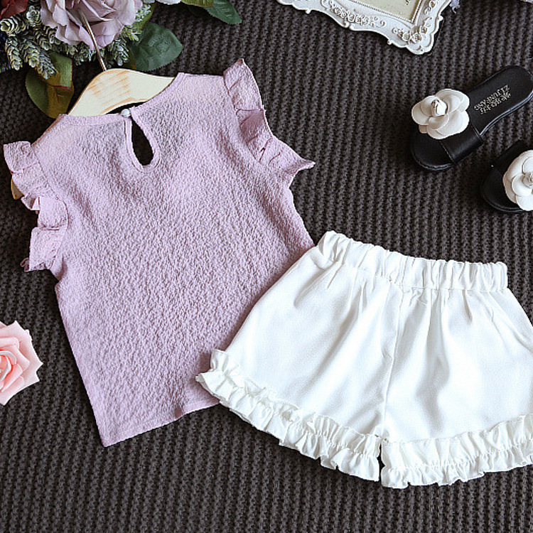 소녀 여름 착용 비행 소매 쉬폰 조끼 레이스 반바지 신선한 투피스 아기 한국식 어린이 세트