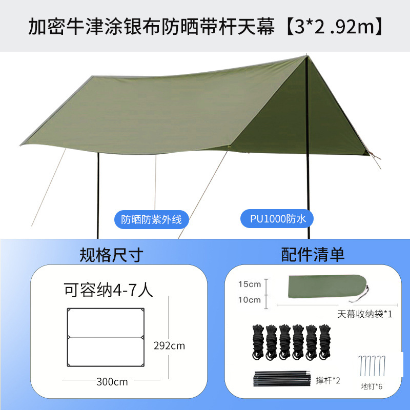 • 실버 코팅 된 300*300cm 정사각형 카키 (간단한 액세서리 패키지)