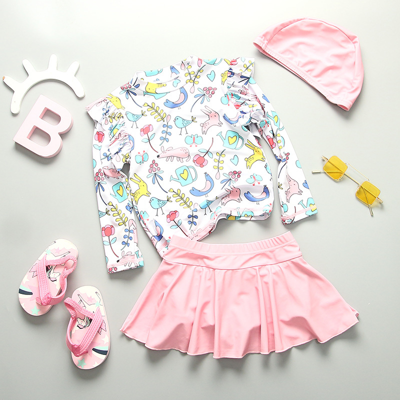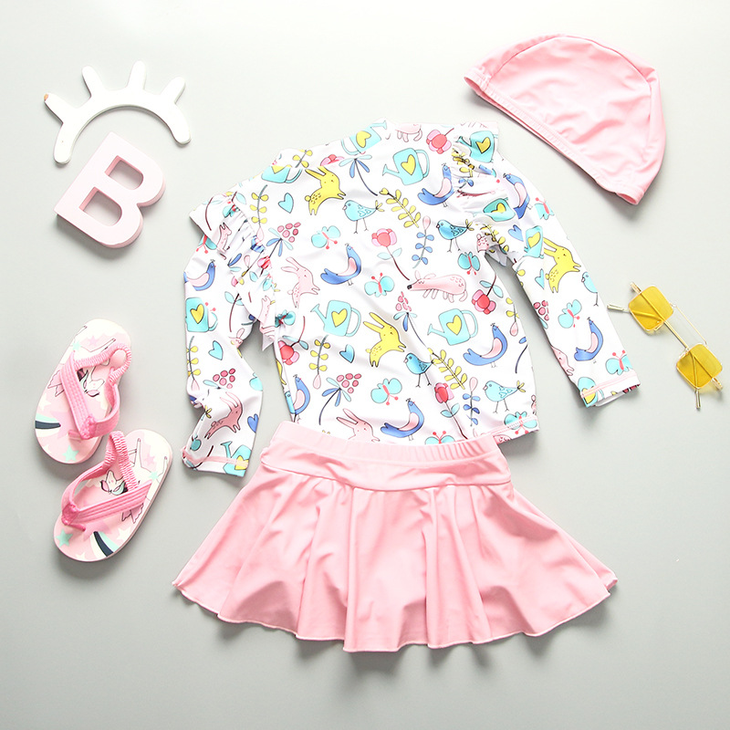 INS 어린이 긴팔 수영복 소녀의 원피스 자외선 차단제 귀여운 아기 중간 및 큰 어린이 한국 어린이 여아 수영복