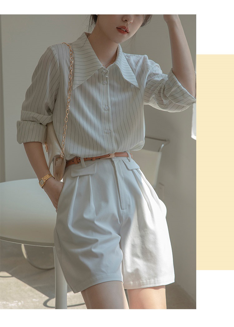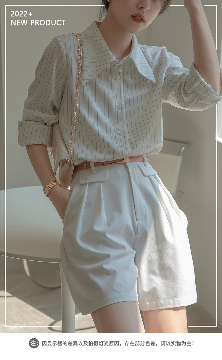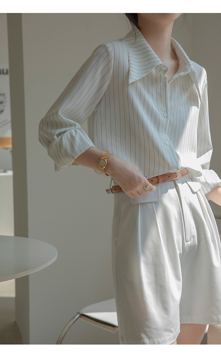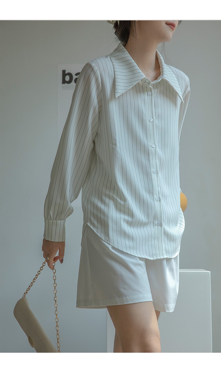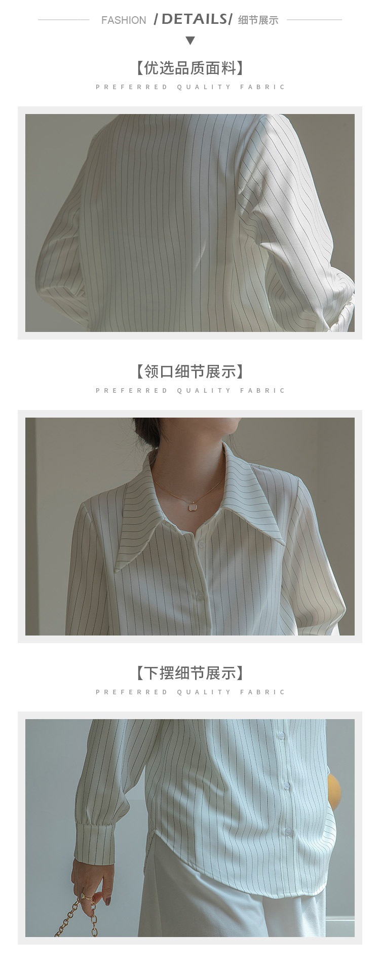 여성용 스트라이프 긴팔 셔츠, 봄 스타일, 가볍고 성숙한 스타일, 유니콘 프로페셔널 솔트 화이트 셔츠, 프렌치 젠틀 탑스토어 가기