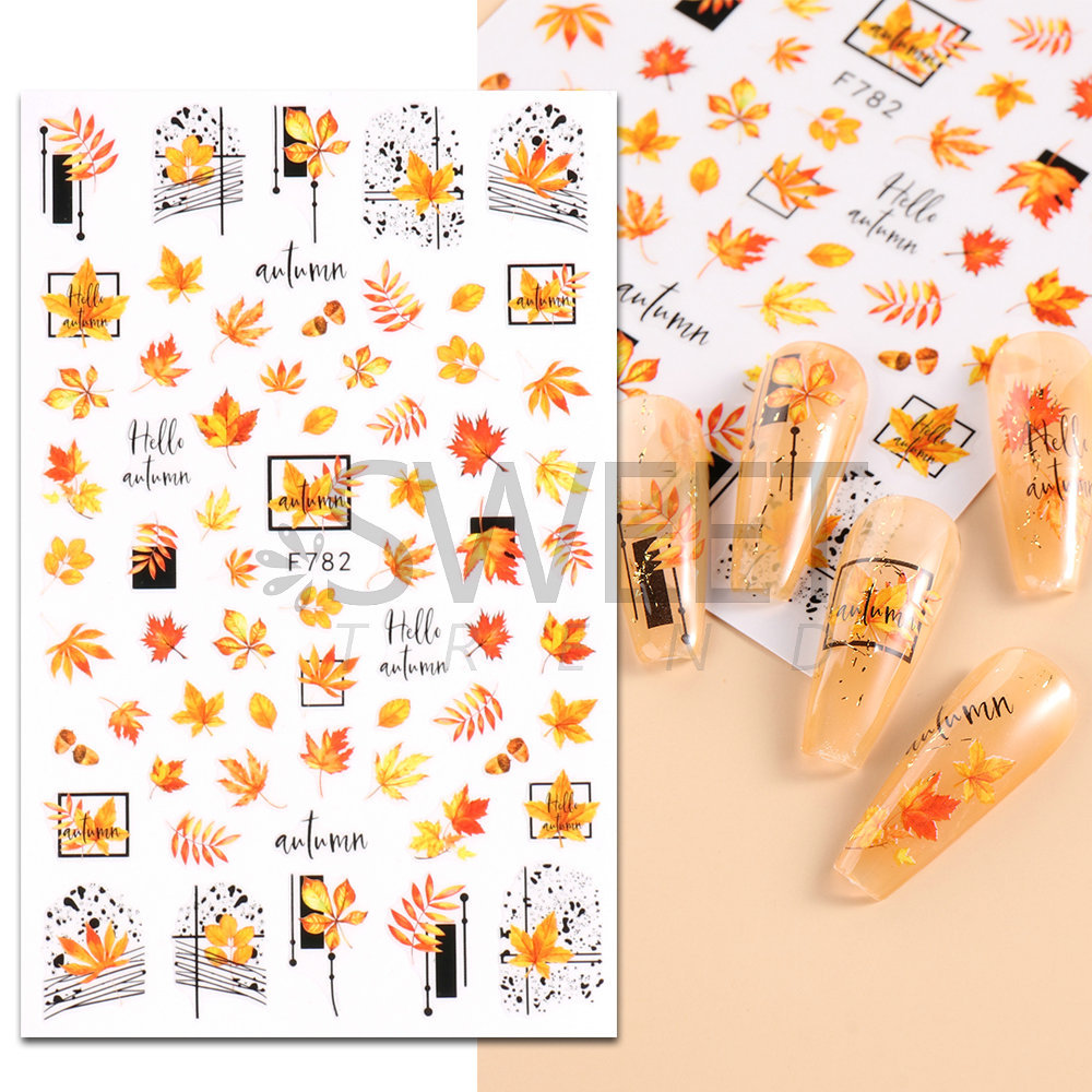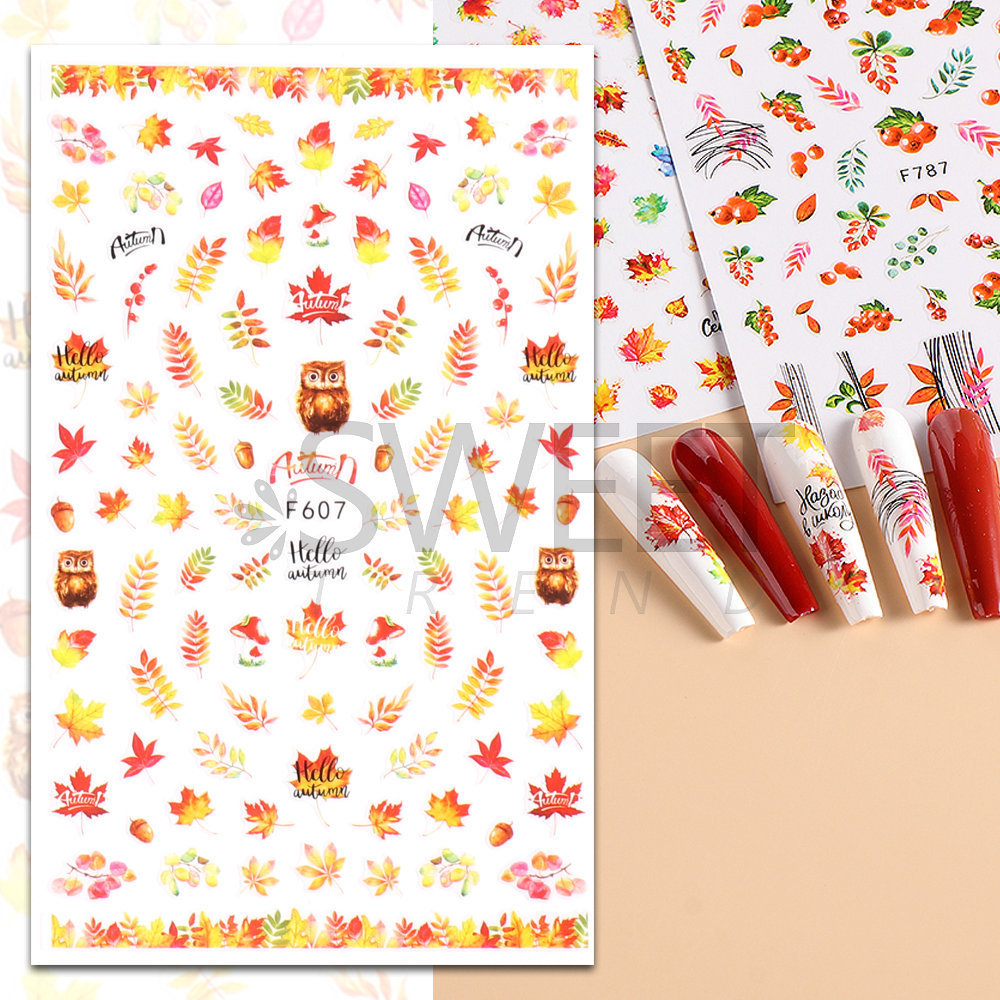 네일 아트 스티커 도매 뜨거운 가을 메이플 리프 크로스 보더 네일 스티커 낙엽 올빼미 네일 데칼
