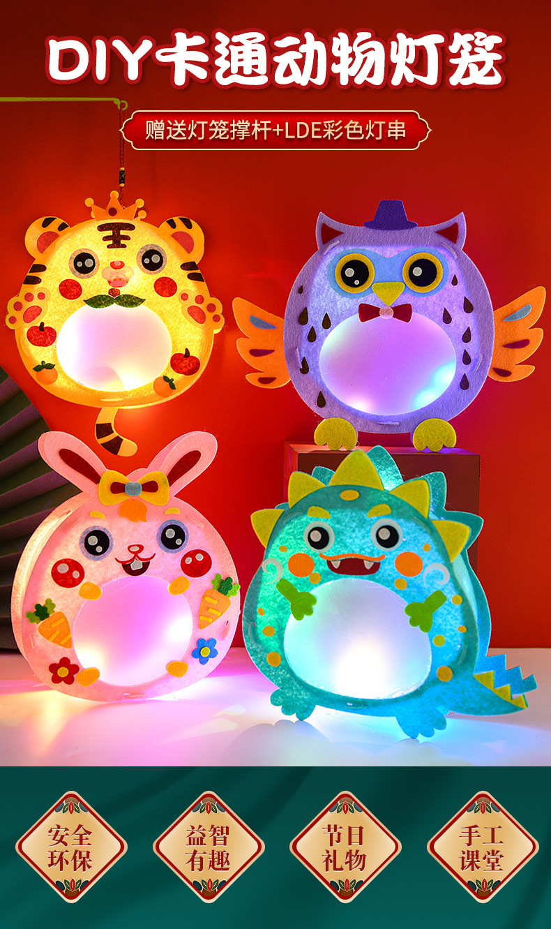 드래곤 이어 휴대용 야광 랜턴 신년 랜턴 어린이 손수 교육 완구 유치원 부모와 자식 DIY 재료 가방스토어 가기