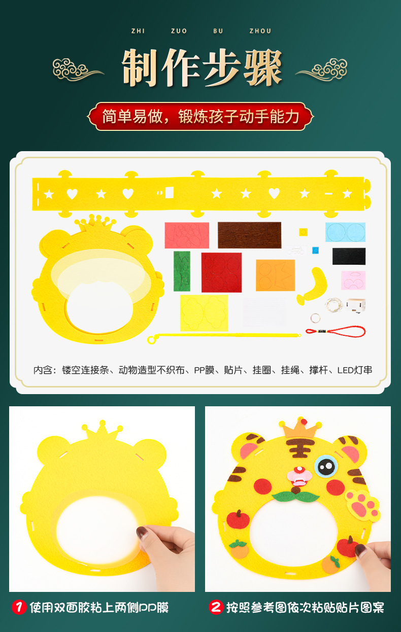드래곤 이어 휴대용 야광 랜턴 신년 랜턴 어린이 손수 교육 완구 유치원 부모와 자식 DIY 재료 가방