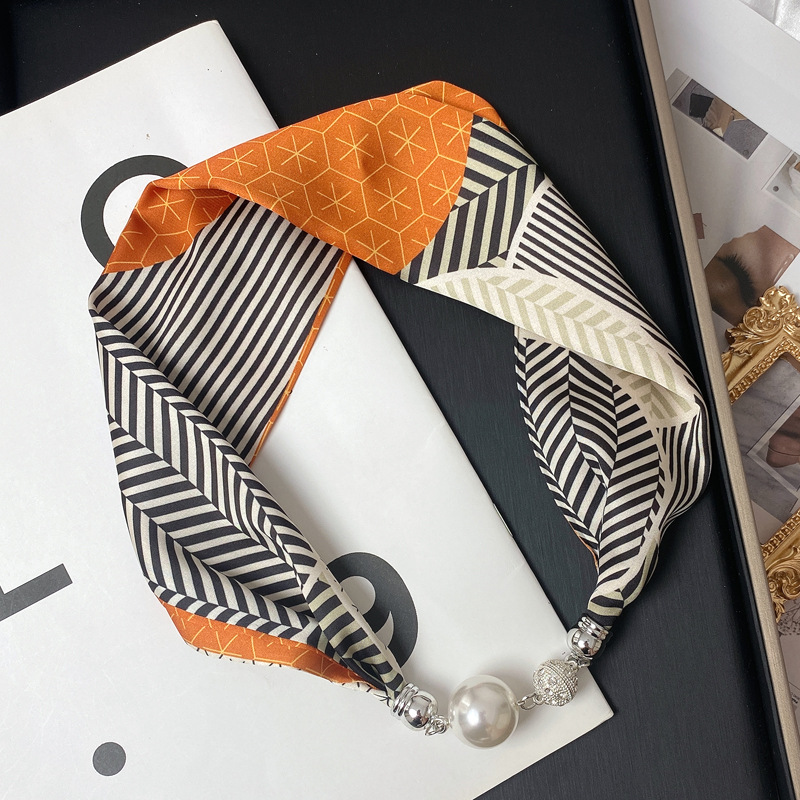 다기능 마그네틱 버클 구슬 손 목걸이 헤어 밴드 시뮬레이션 실크 스카프 스카프 여성 게으른 작은 나비 넥타이 모든 매치 봄, 여름, 가을