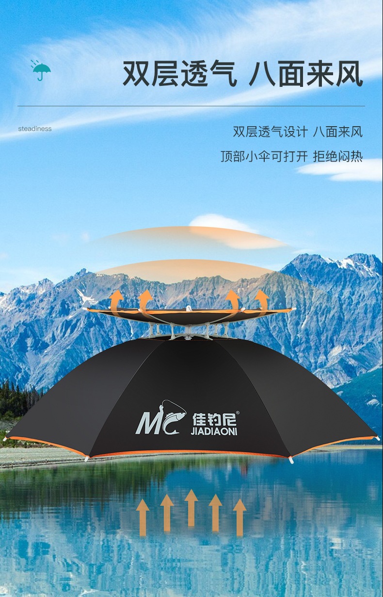 Jia Diaoni 더블 레이어 우산 모자 머리 장착 우산 모자 작은 우산 낚시 머리 모자 차양 태양 보호 비 보호