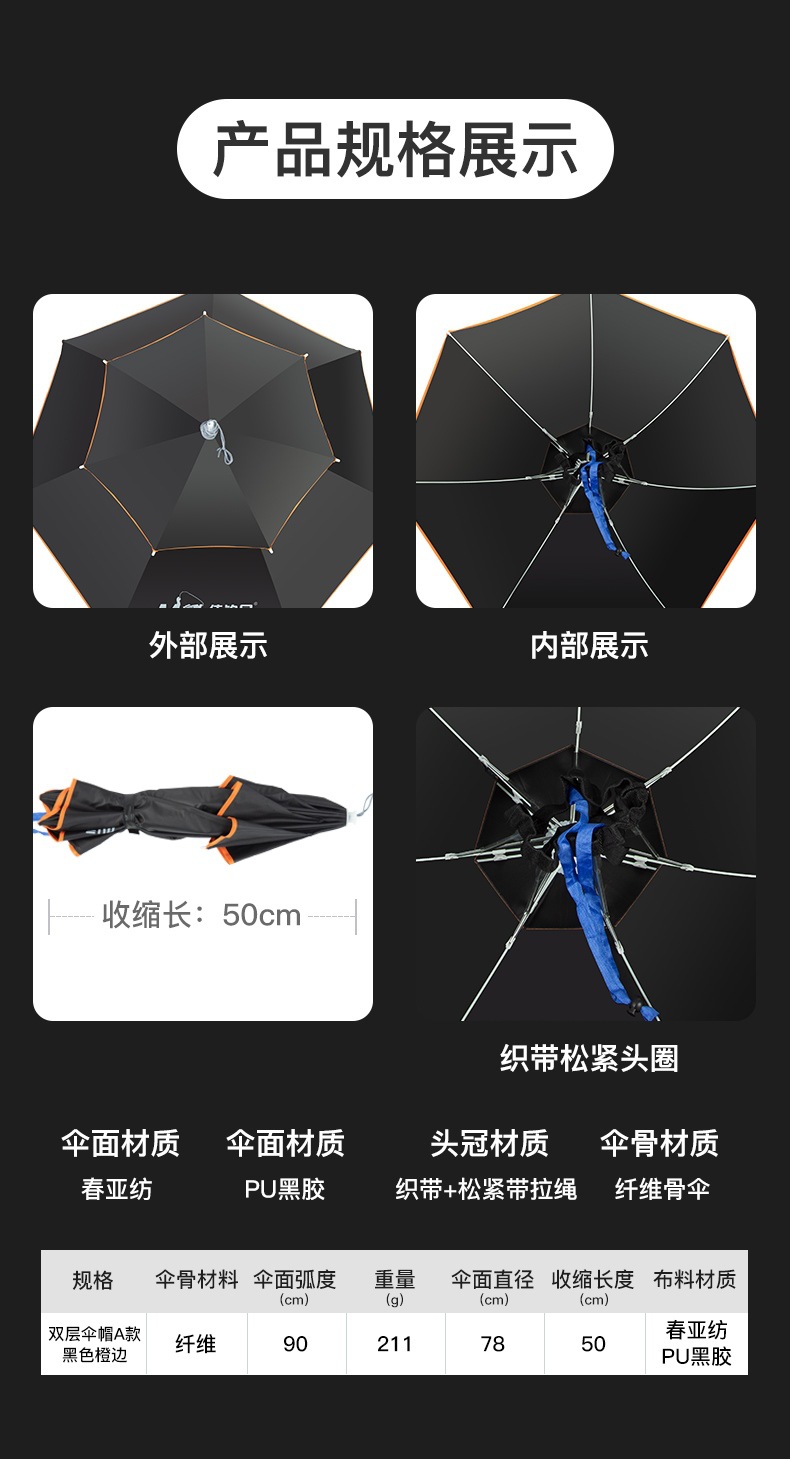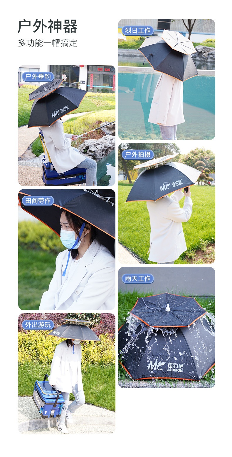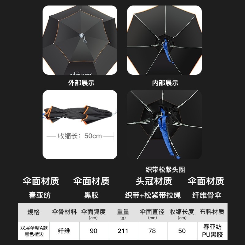Jia Diaoni 더블 레이어 우산 모자 머리 장착 우산 모자 작은 우산 낚시 머리 모자 차양 태양 보호 비 보호스토어 가기