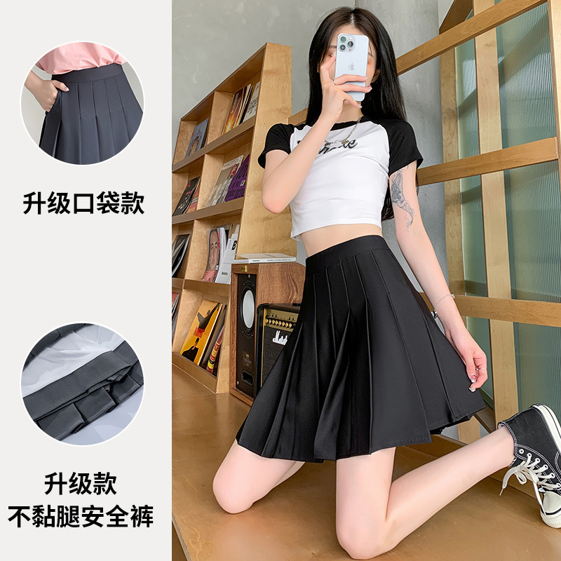 여성용 신축성 있는 플리츠 스커트, 여성용 여름 스커트, 2025 신상 하이웨이스트 슬리밍 대학 소녀 스타일 포켓 스타일 짧은 스커트