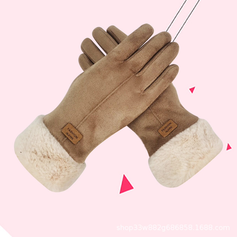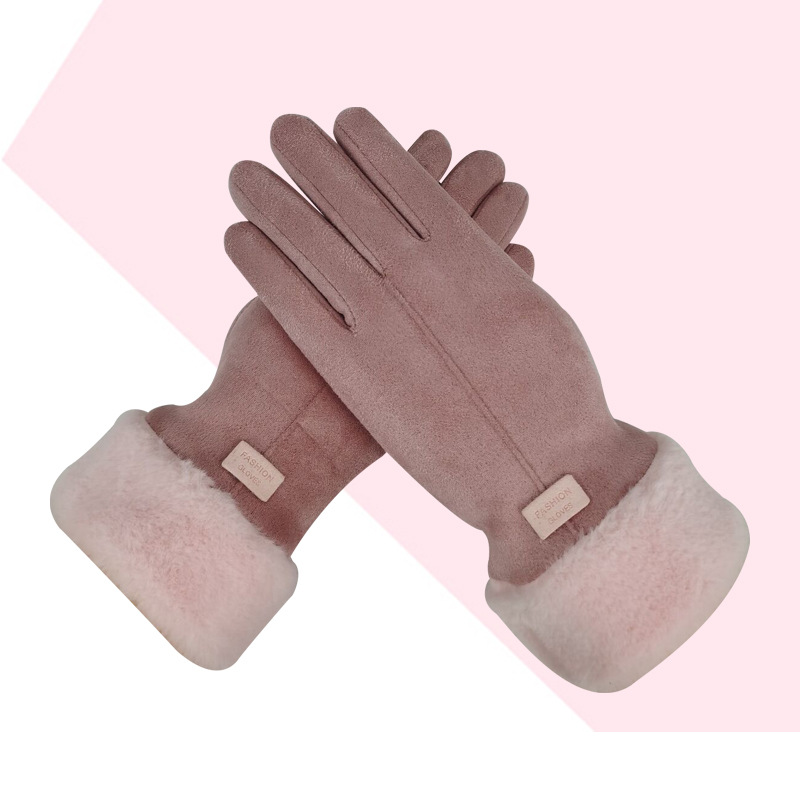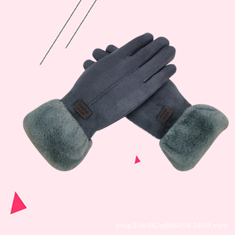 여성용 스웨이드 장갑 겨울용 플러스 벨벳 탄성 터치스크린 운전 및 자전거 타기 야외 방풍 및 방한 봄과 가을 따뜻한 장갑
