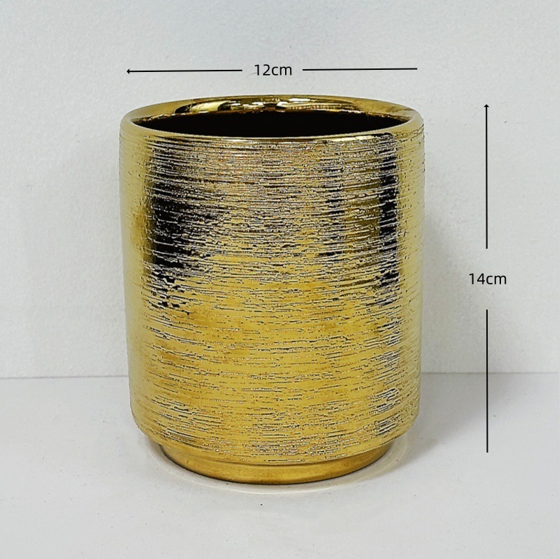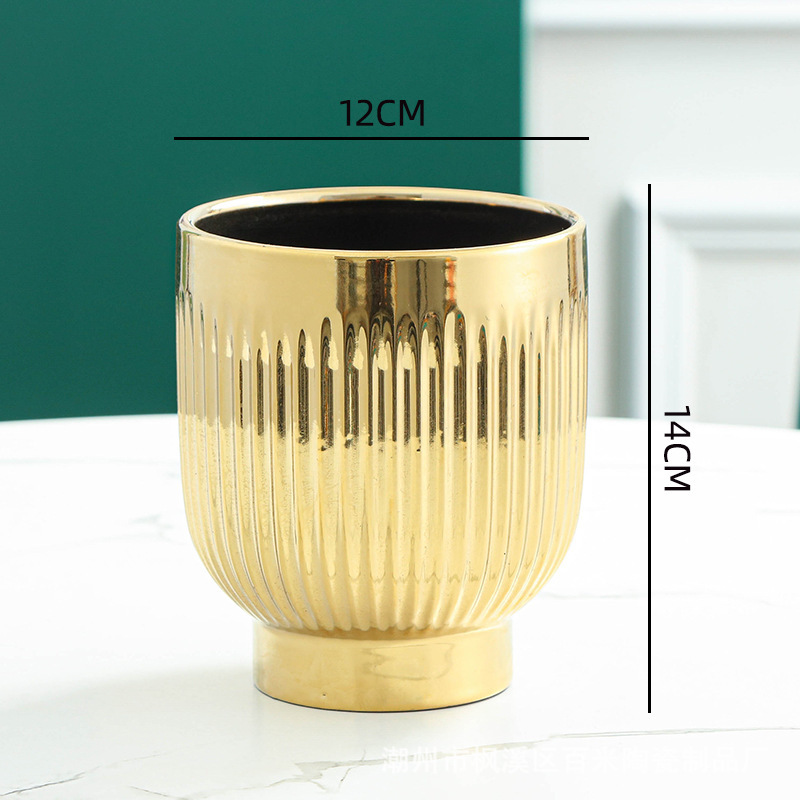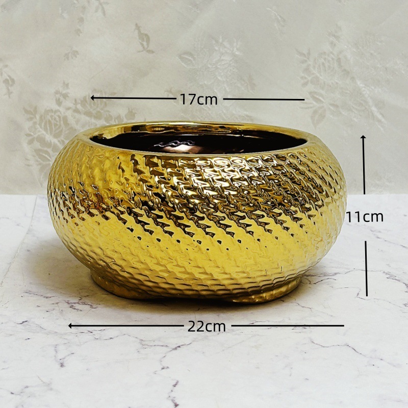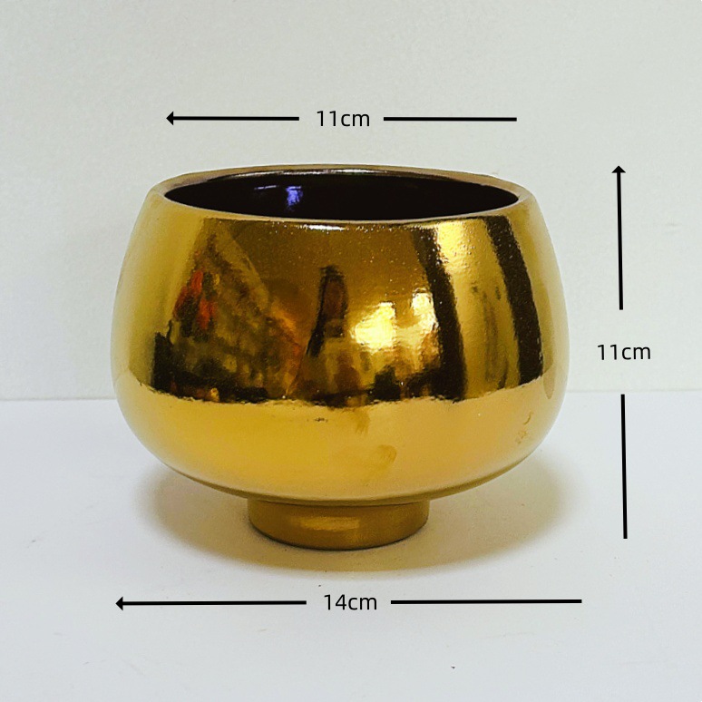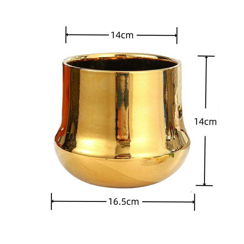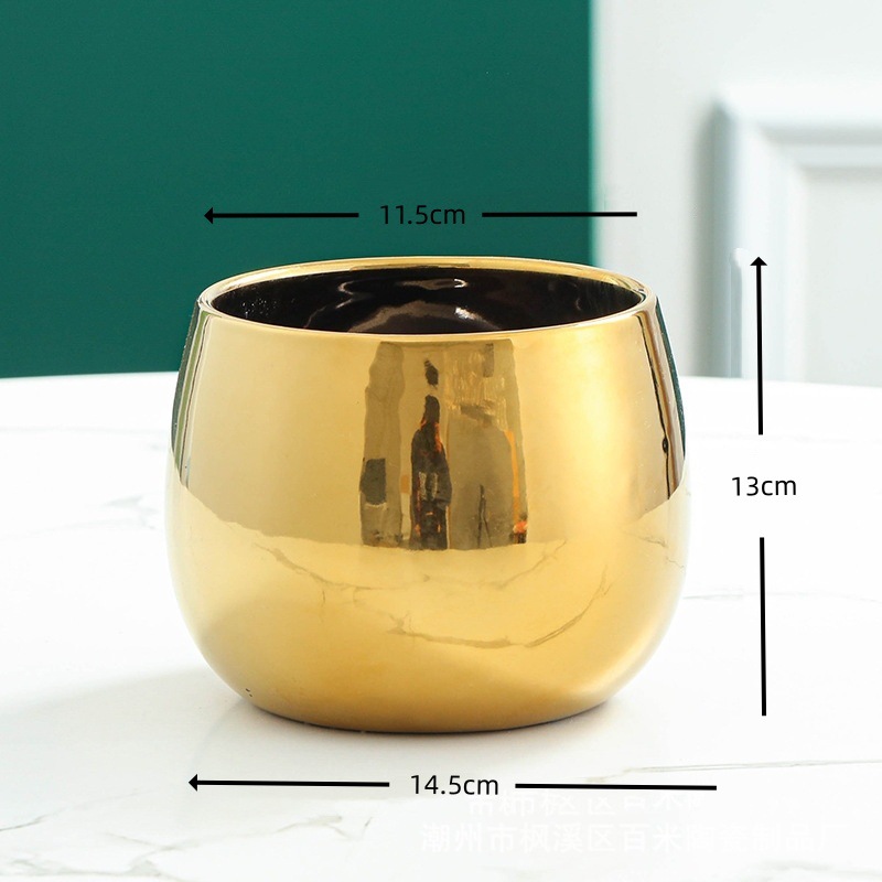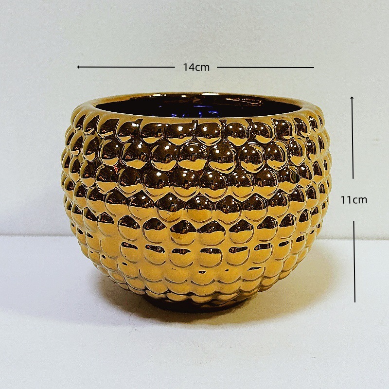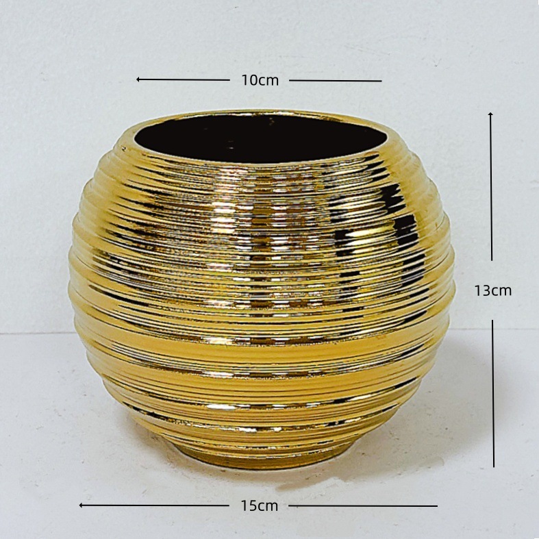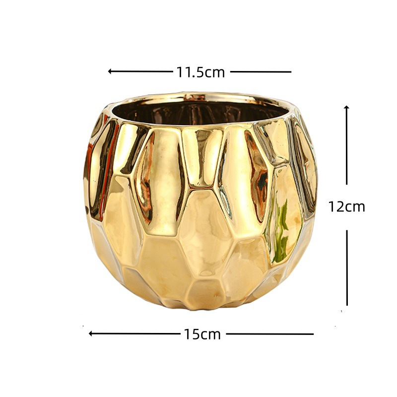 북유럽 스타일 기하학적 모양 세라믹 화분 구형 금도금 사무실 꽃꽂이 장식 소형 꽃병 창의적