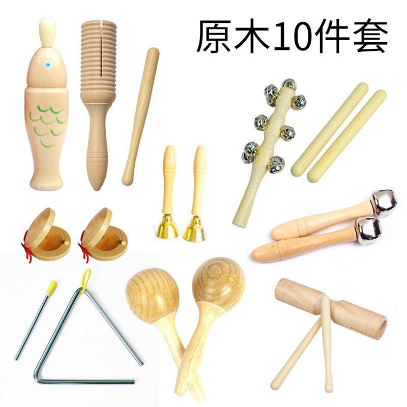 유치원 오르프 타악기 로그 세트 장난감 교육 보조 사운드 보드 샌드 해머 탬버린 삼각형 더블 링