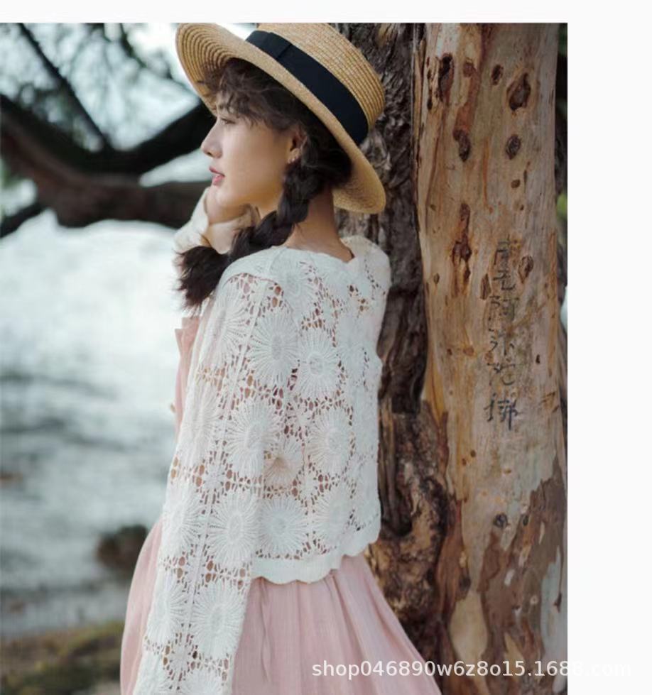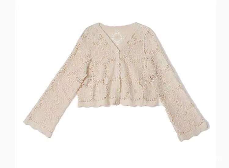 중공 니트웨어 짧은 카디건 자외선 차단제 탑 부드러운 소녀 달콤한 복고풍 스타일 작은 코트 긴 소매 우아한 겉옷