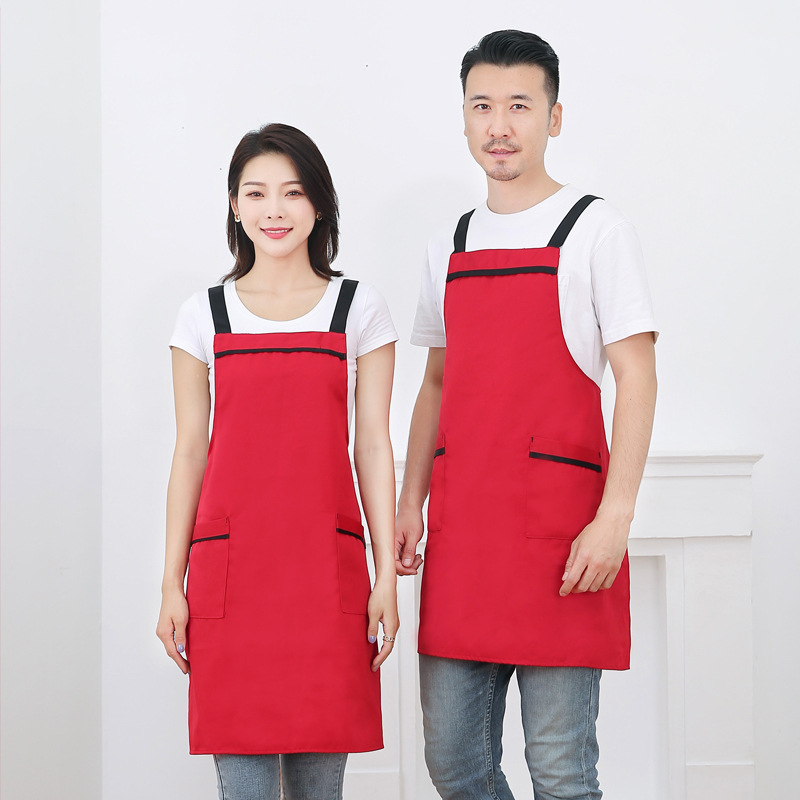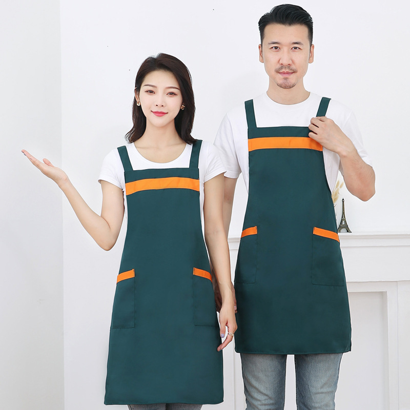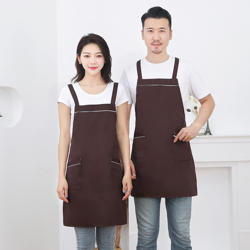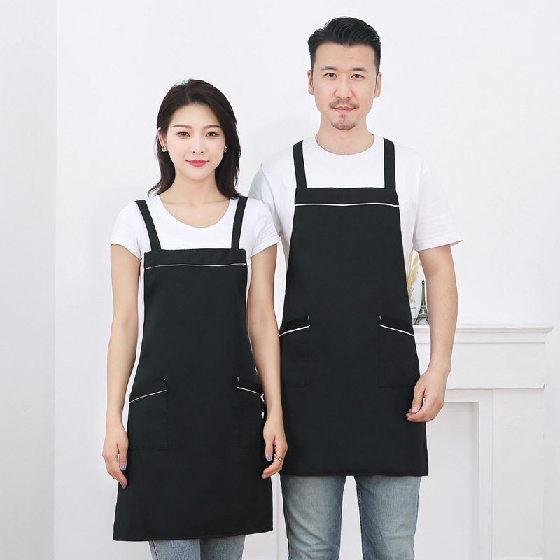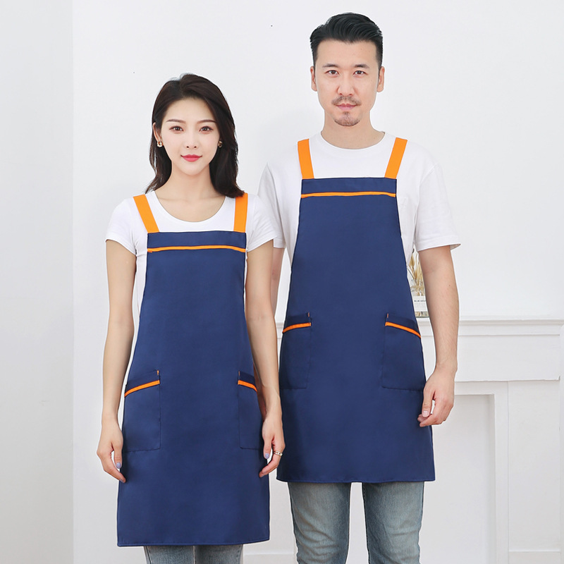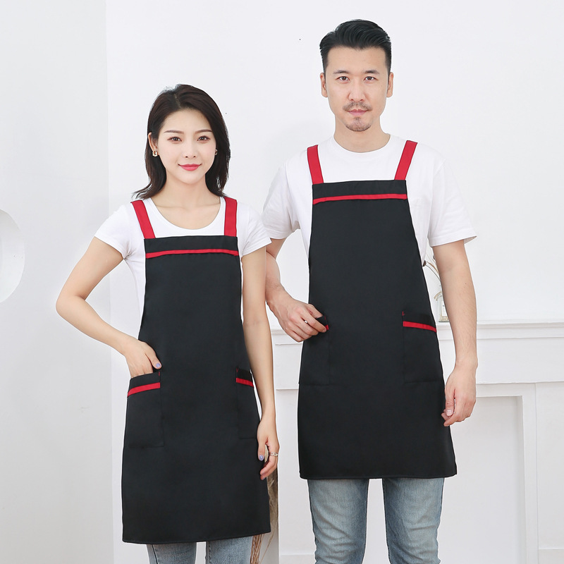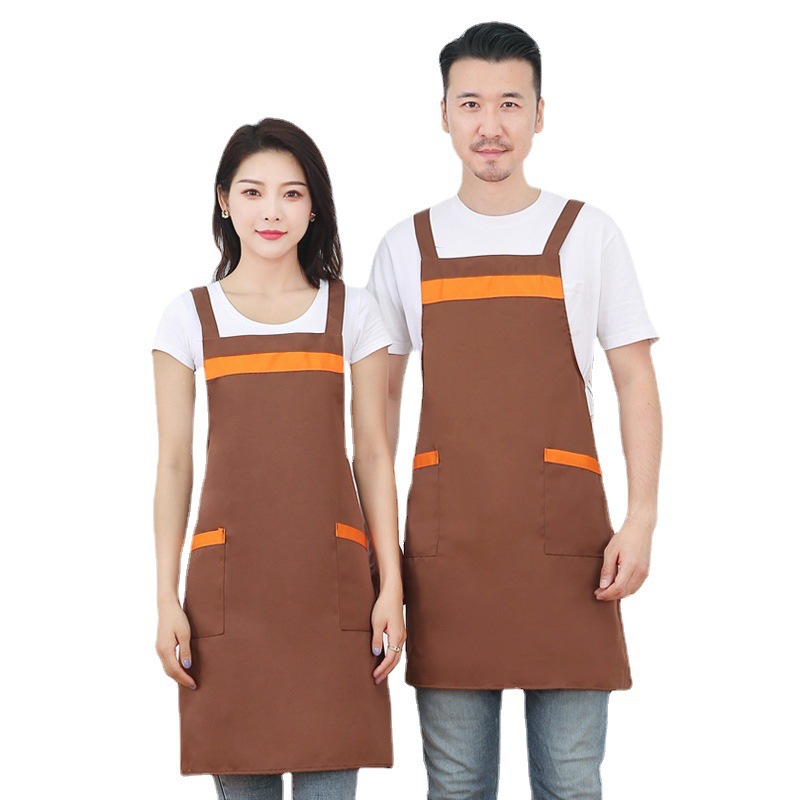 작업복 배색 앞치마 밀크티 가게 카페 두꺼운 작업복 가정용 주방 방유 방오 끈 앞치마