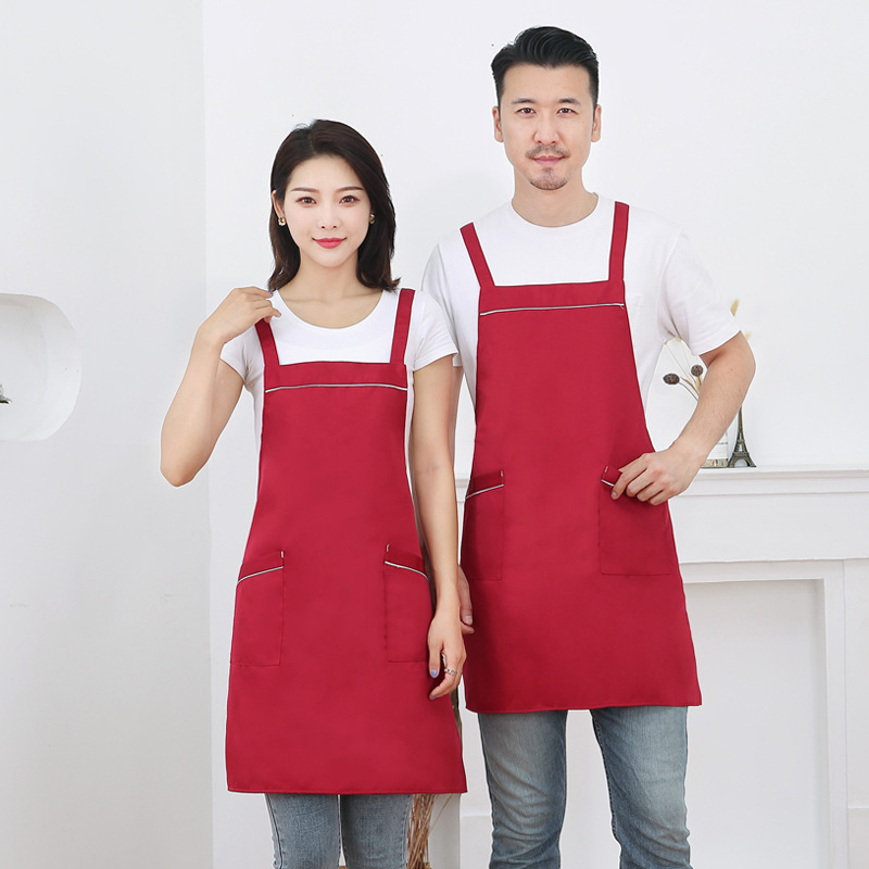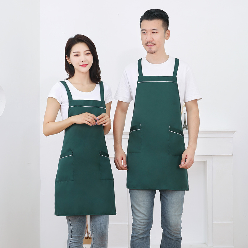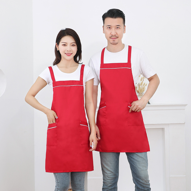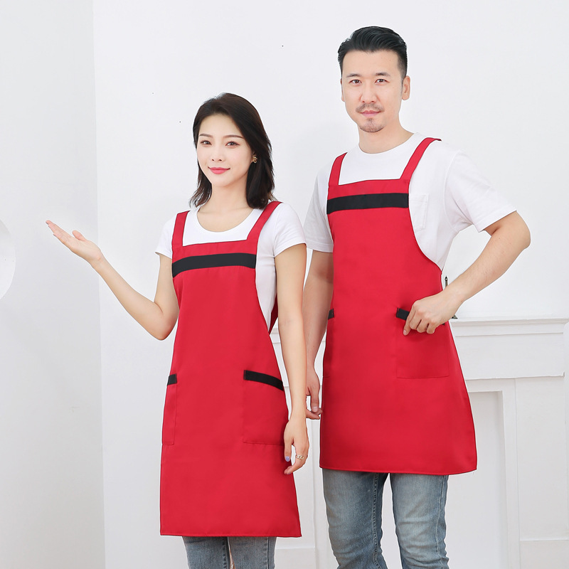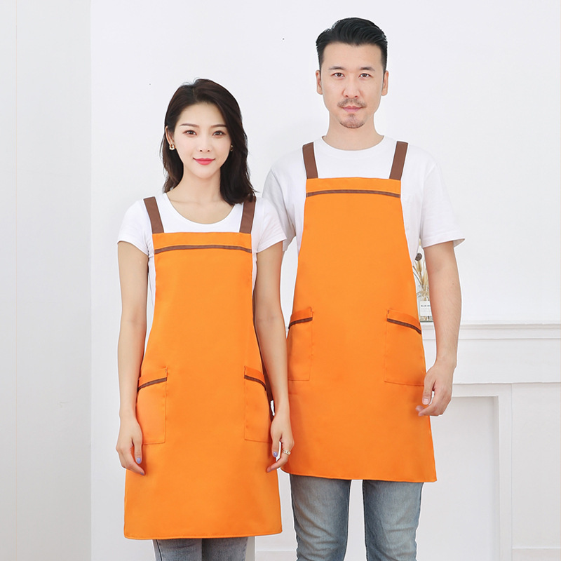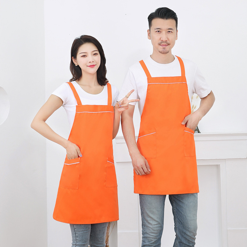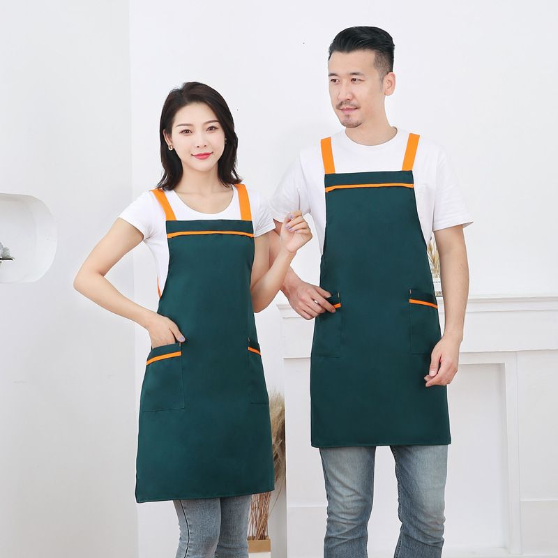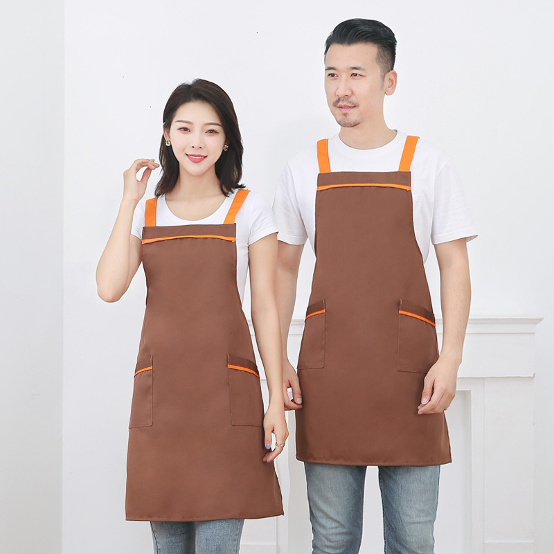 작업복 배색 앞치마 밀크티 가게 카페 두꺼운 작업복 가정용 주방 방유 방오 끈 앞치마