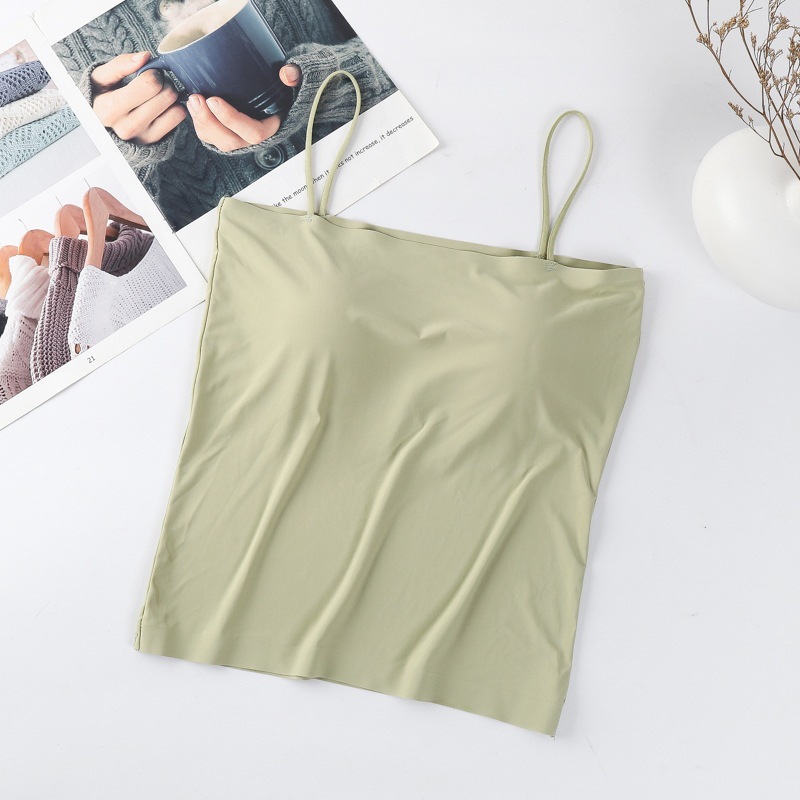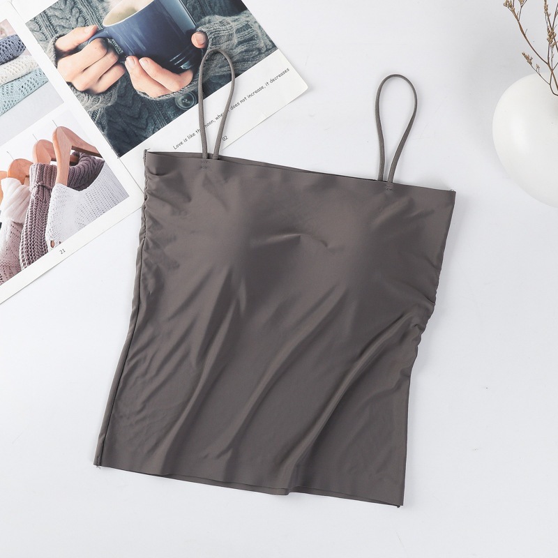 가슴 패드가있는 여름 새로운 아이스 실크 원활한 슬링 조끼 원피스 아름다운 등 포장 가슴 속옷 원피스 어깨 조끼