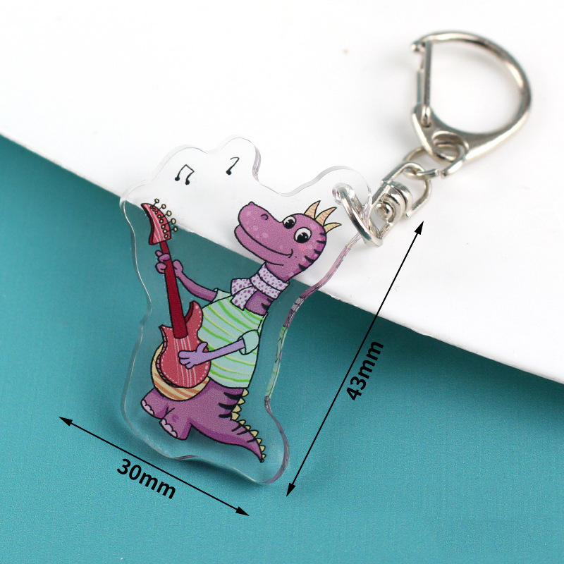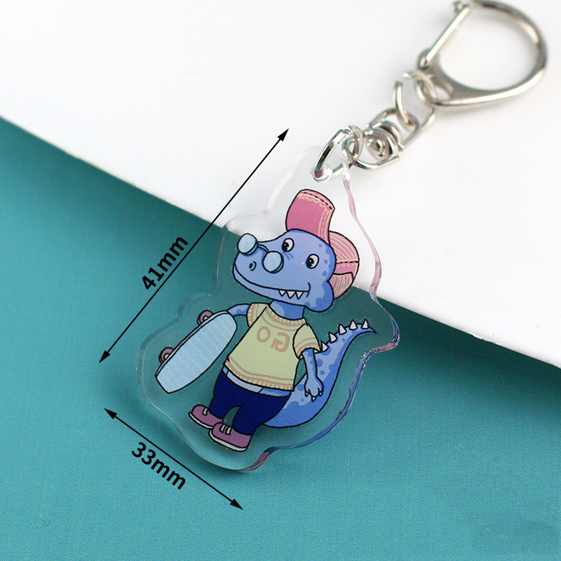 만화 아크릴 공룡 키 체인 재고 양면 투명 펜던트 작은 선물 창조적 인 DIY 애니메이션 키 체인스토어 가기