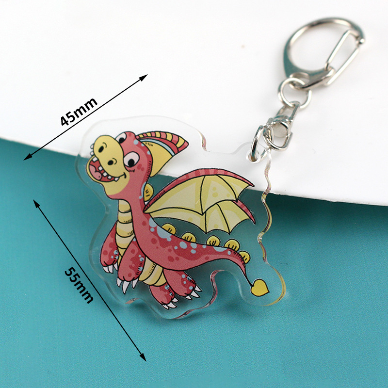 만화 아크릴 공룡 키 체인 재고 양면 투명 펜던트 작은 선물 창조적 인 DIY 애니메이션 키 체인
