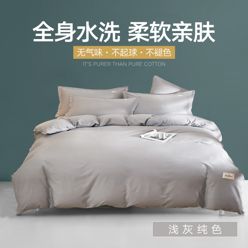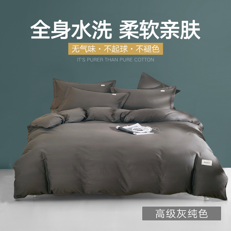 단색 4 피스 코튼 40 능 침대 시트 이불 커버 침구 싱글 3 피스 블루 그레이