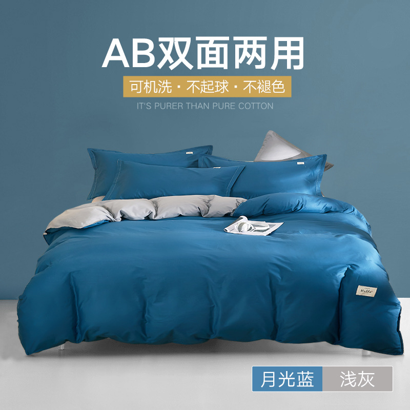 단색 4 피스 코튼 40 능 침대 시트 이불 커버 침구 싱글 3 피스 블루 그레이스토어 가기