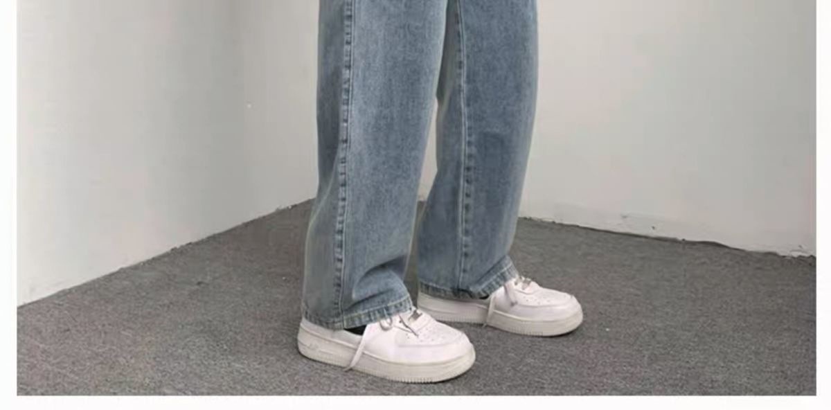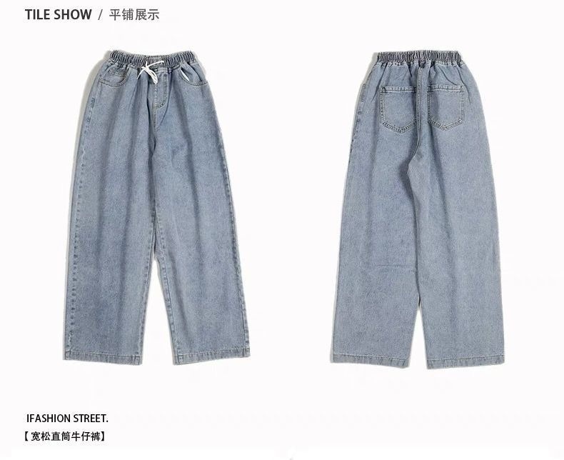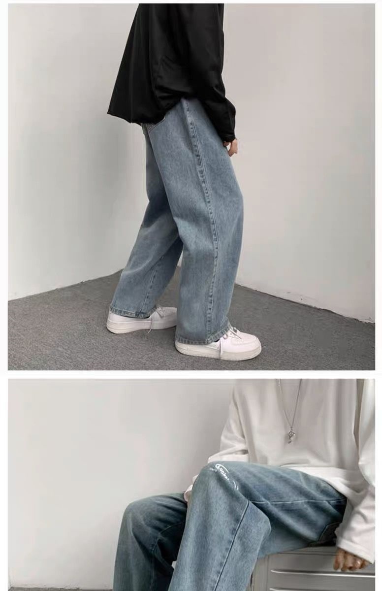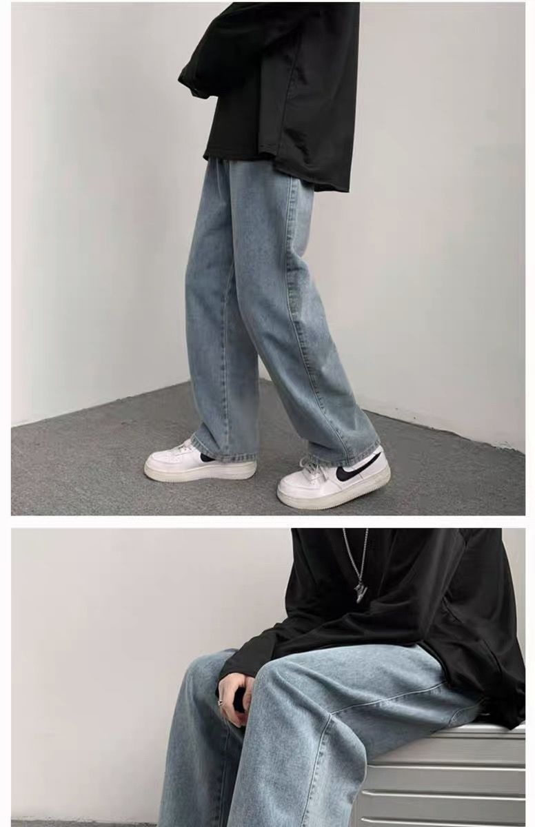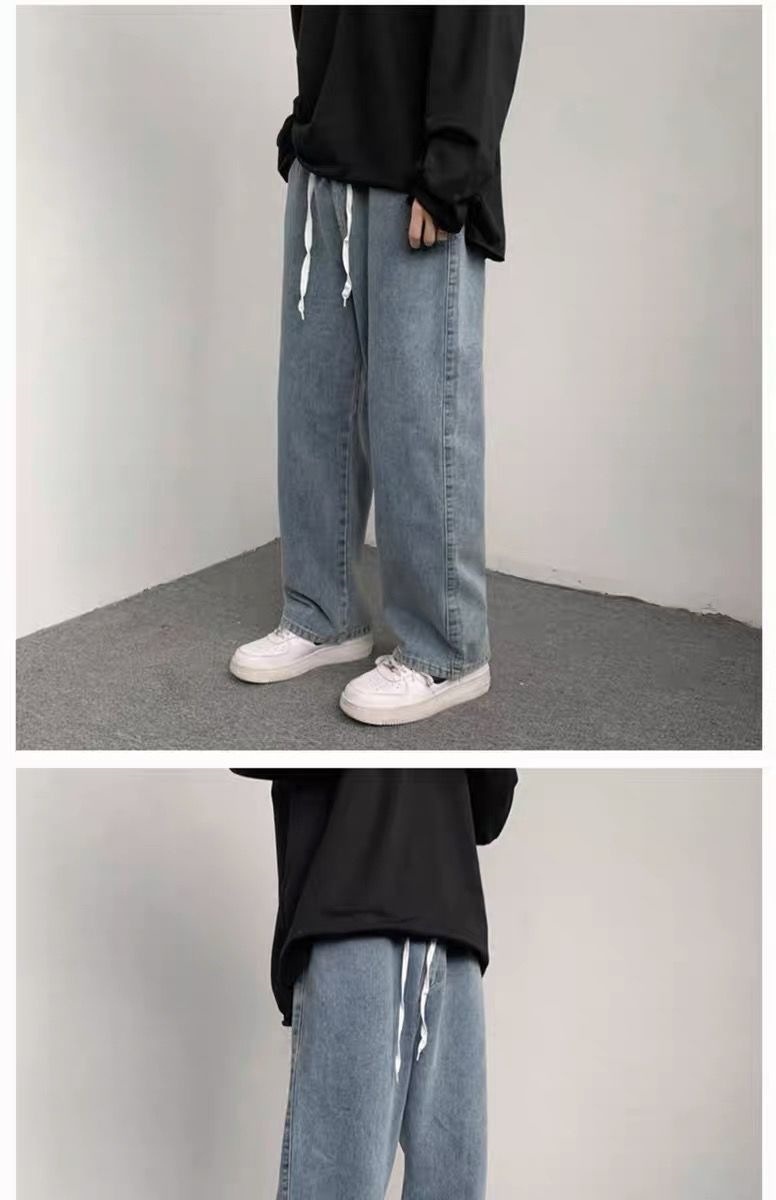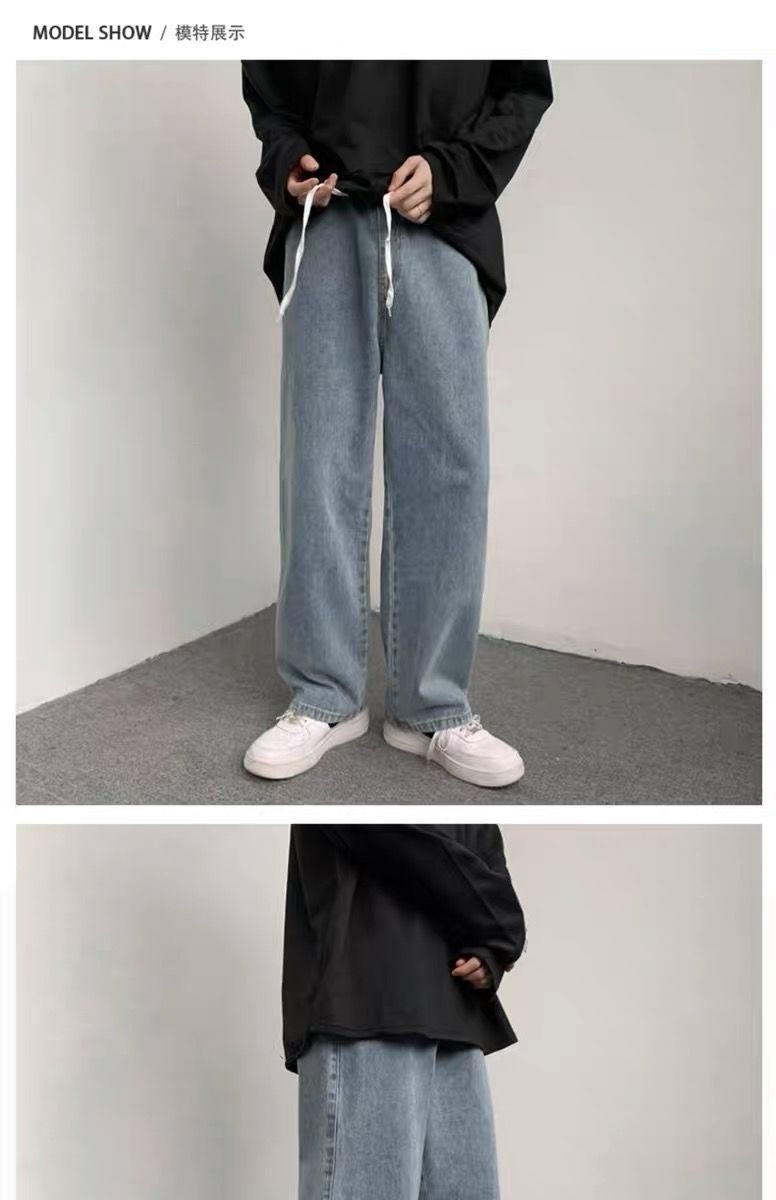 남성용 루즈한 워싱 모든 매치 트렌디 테더 롱 팬츠 와이드 레그 스트레이트 레그 트렌디 Instagram 스타일 팬츠스토어 가기
