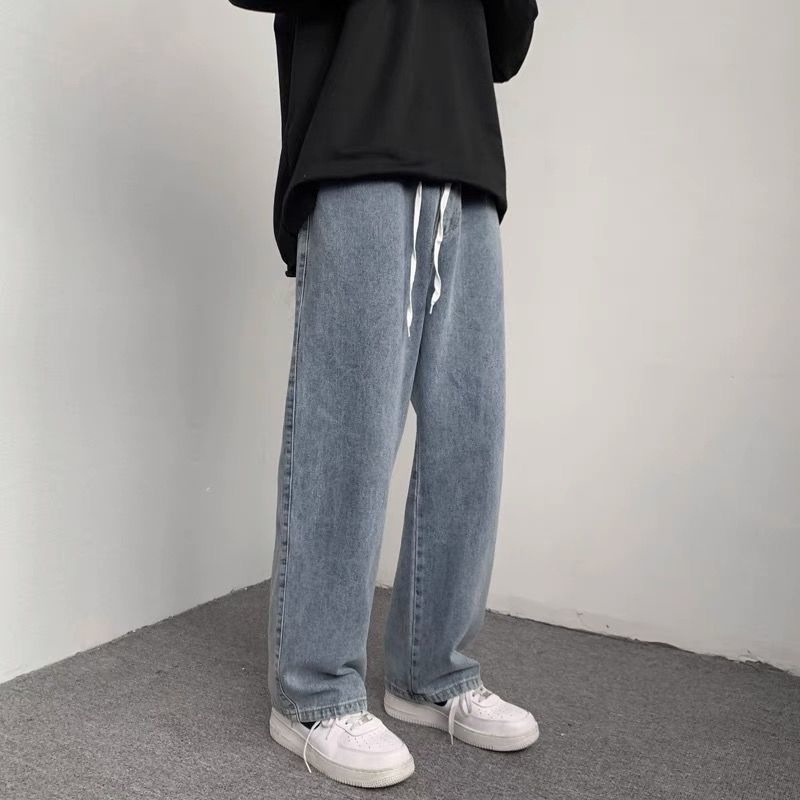 남성용 루즈한 워싱 모든 매치 트렌디 테더 롱 팬츠 와이드 레그 스트레이트 레그 트렌디 Instagram 스타일 팬츠