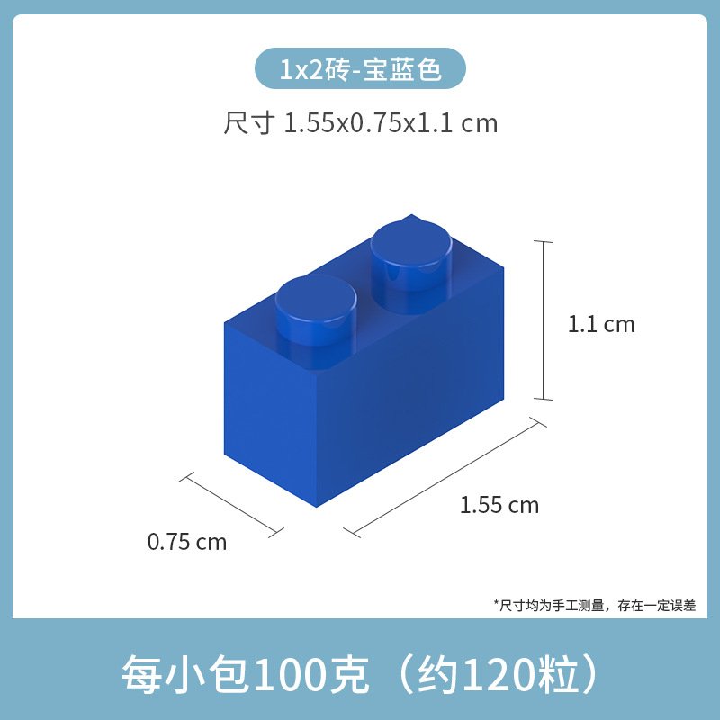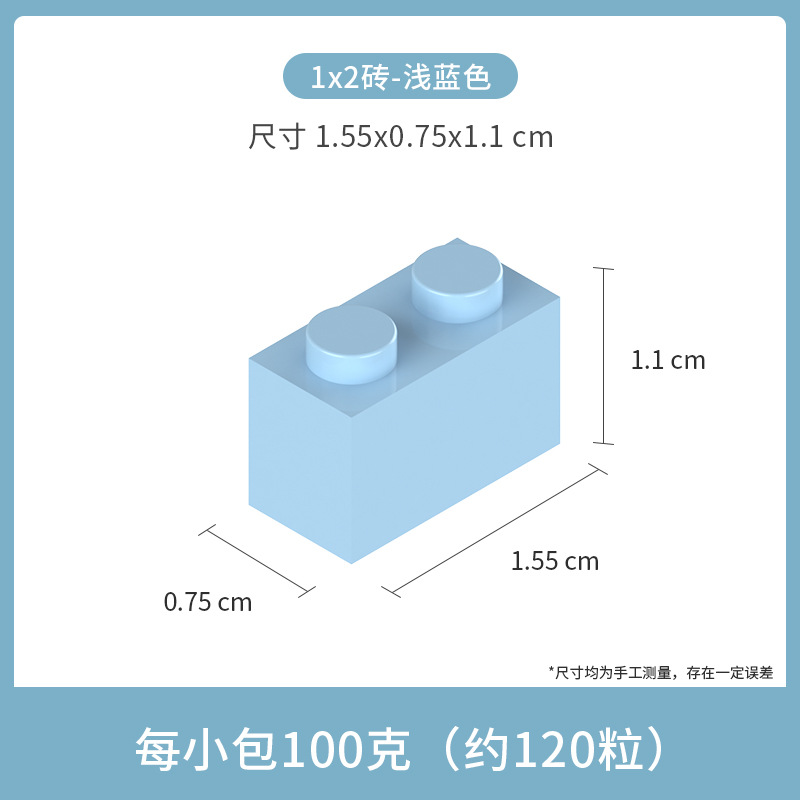 • 작은 입자 1*2 두꺼운 벽돌 2 구멍 라이트 블루 100g