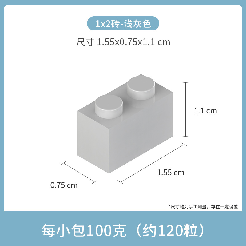 • 작은 입자 1*2 두꺼운 벽돌 2 구멍 라이트 그레이 100g