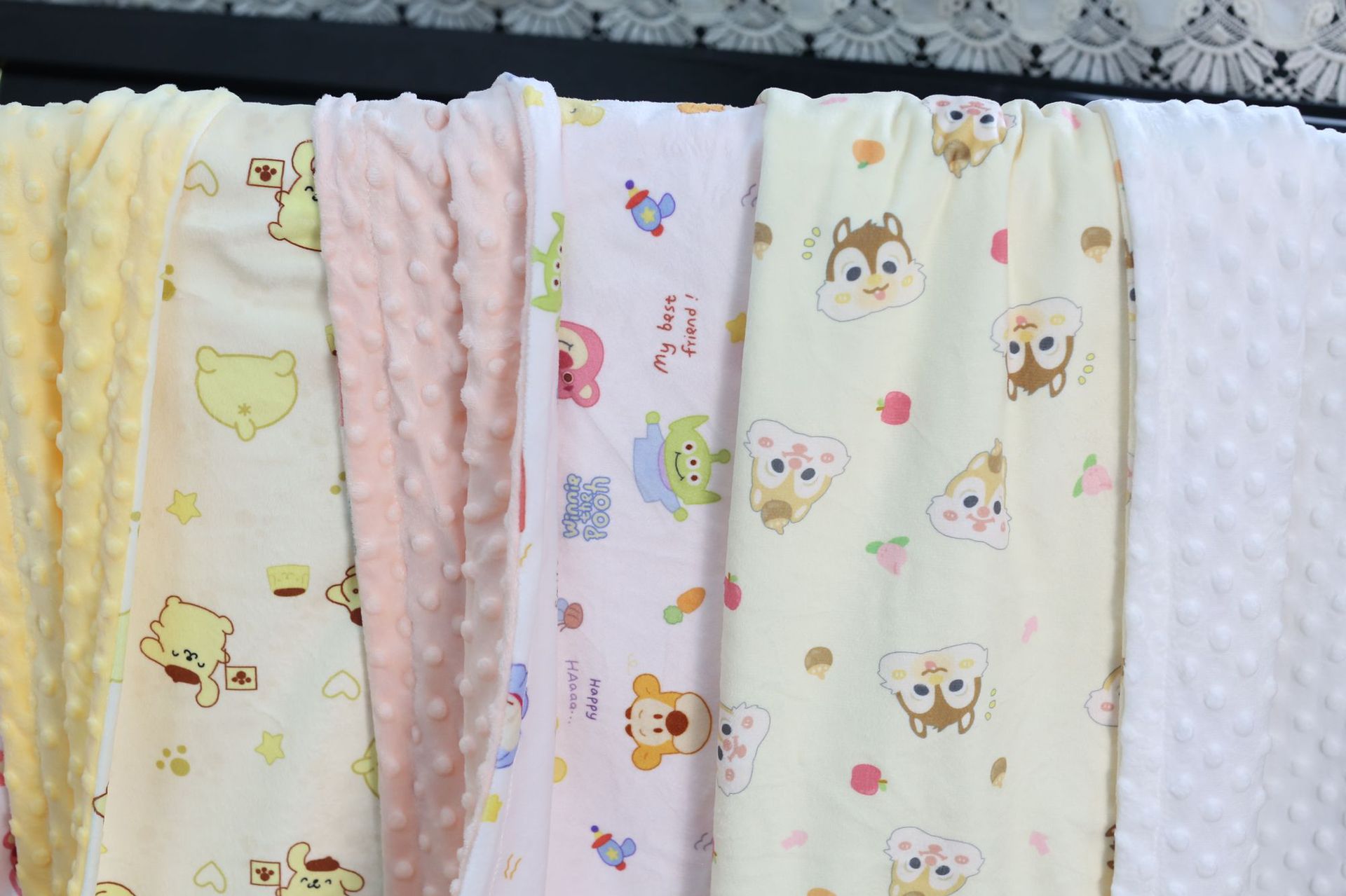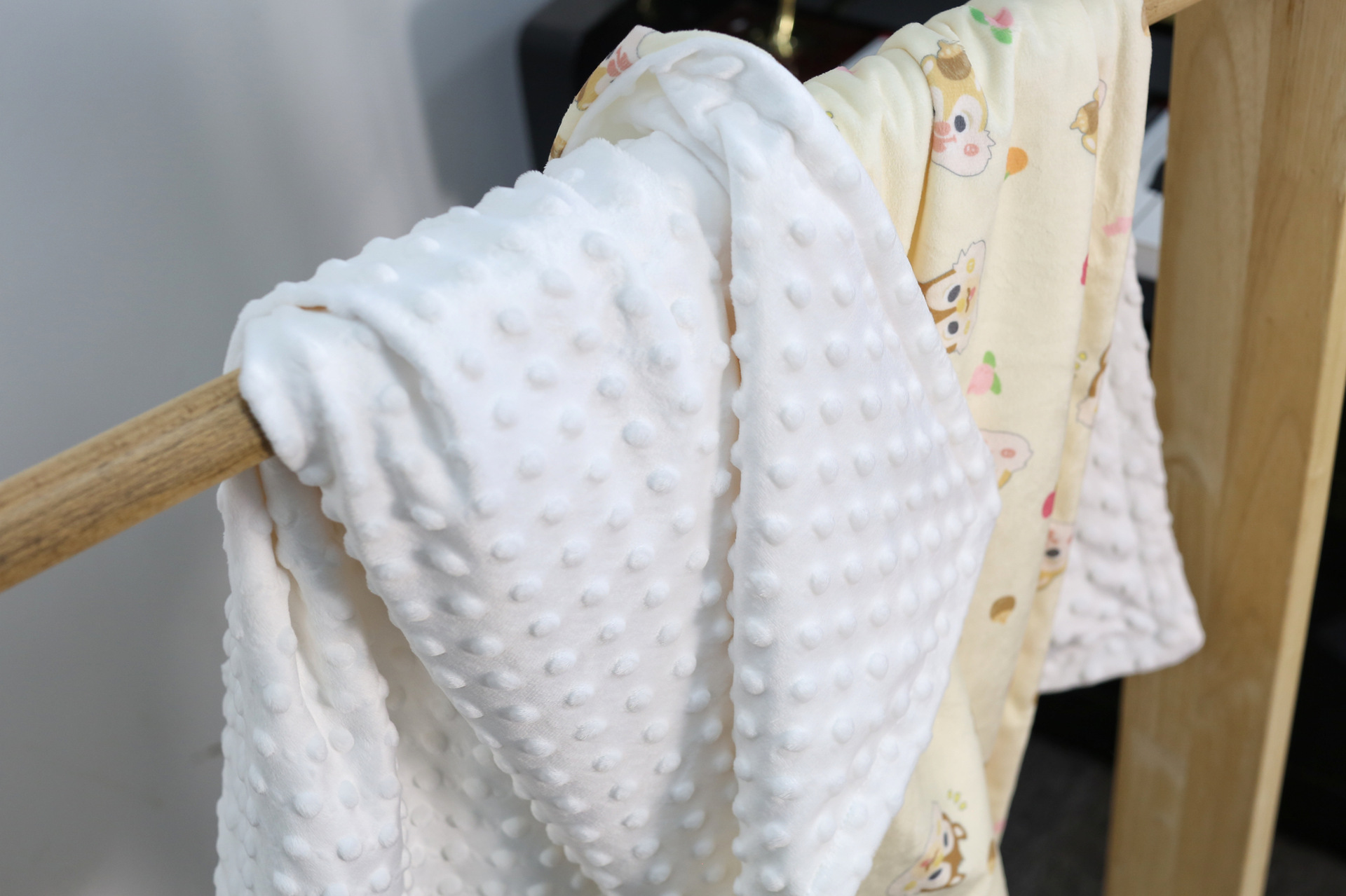 印花面是超柔短毛绒,内层为高克重250克豆豆绒!!!!市面一般为180克