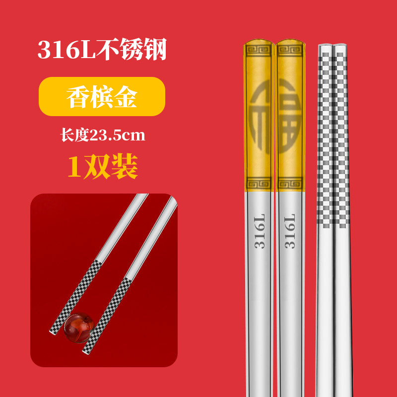 제조업체 재고 316 스테인리스 젓가락, 전골용 가정용 미끄럼 방지 금속 젓가락, 두꺼운 중공형, 중국풍 선물세트스토어 가기