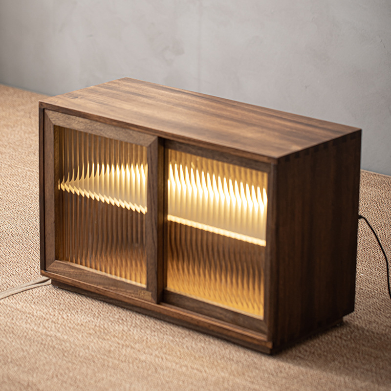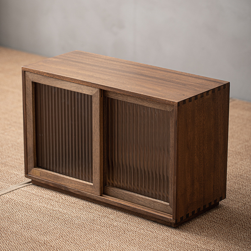 월넛 데스크탑 스토리지 캐비닛 슬라이딩 도어 단단한 나무 빈티지 스토리지 캐비닛 물 컵 차 세트 컵 보관 캐비닛스토어 가기