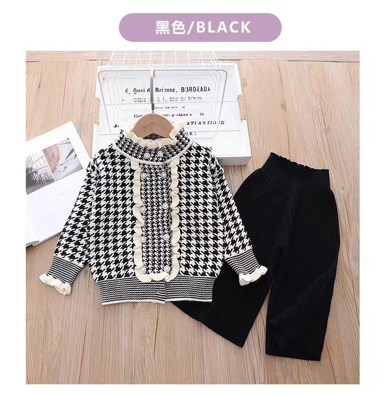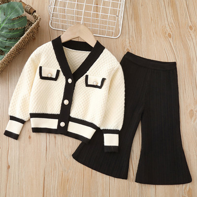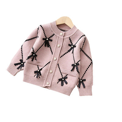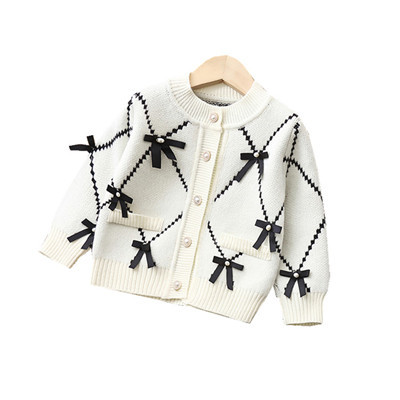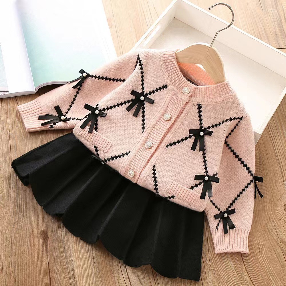 여아 스웨터 세트 어린이 니트 투피스 세트 2022 신상품 여성용 보우 가디건 세트 1-8 세