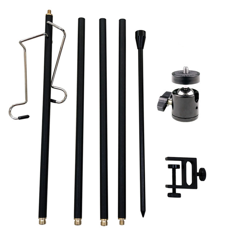 PTZ 휴대 전화 클립으로 검은 야외 캠핑 램프 스탠드 이동식 휴대용 캠핑 조명 폴 브래킷