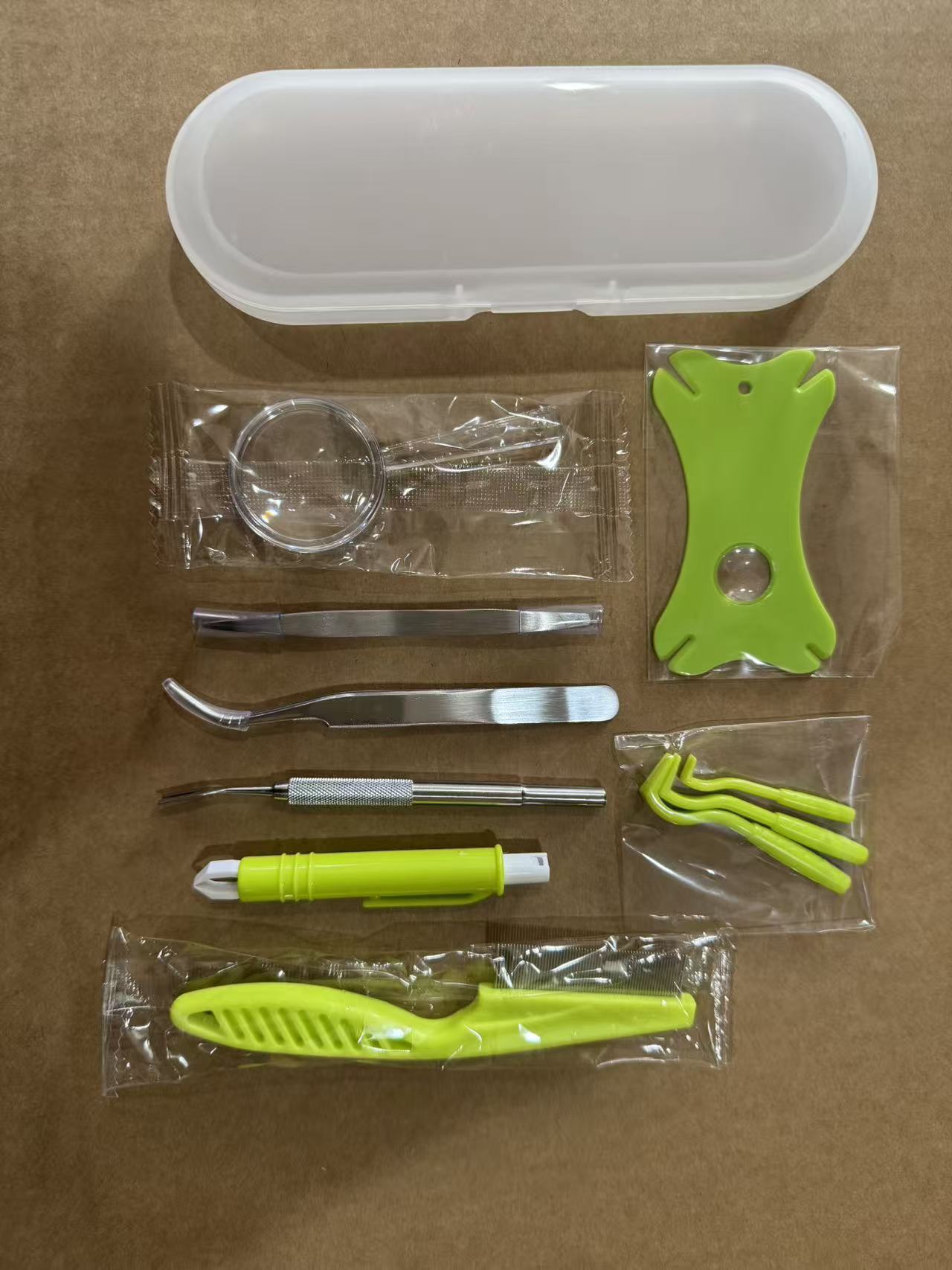 • 38#핀셋 1개와 녹색 후크 3개가 상자에 들어있습니다.