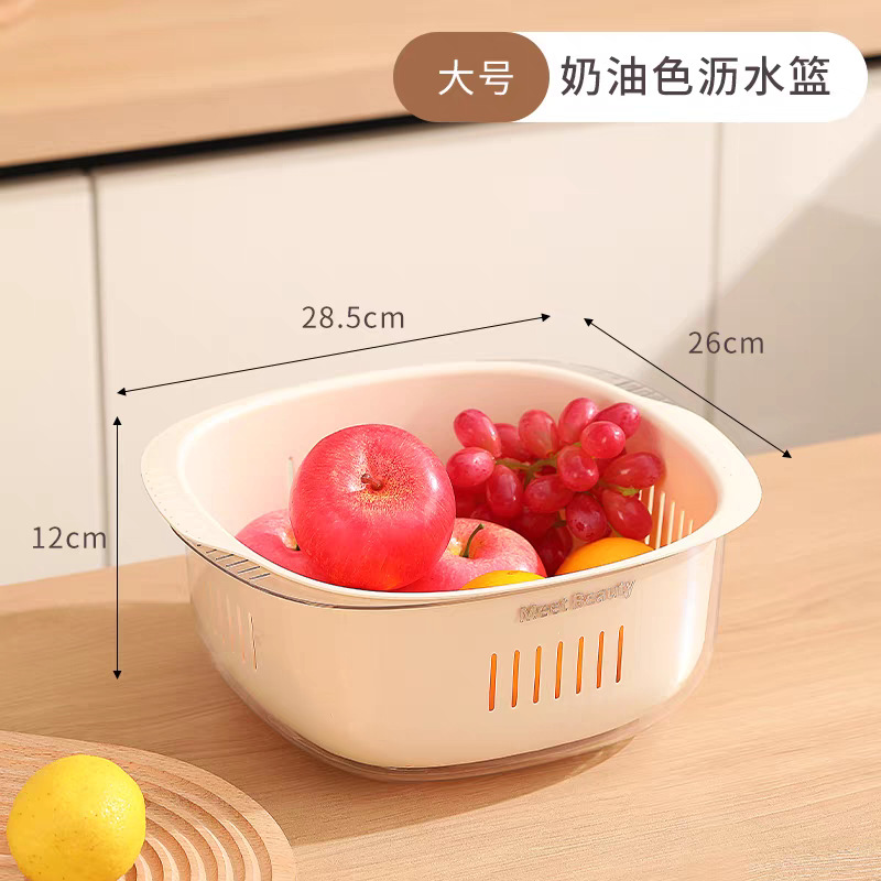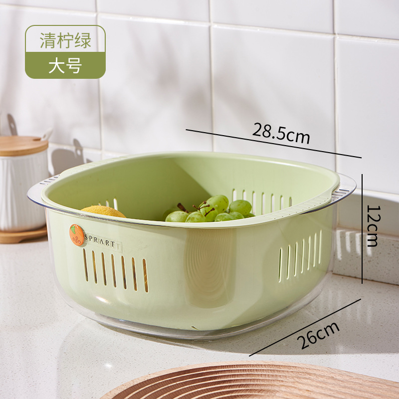 투명하고 가벼운 고급 이중층 배수 바구니, 야채 바구니, 가정 거실 다기능 수납 그릇, 과일 접시, 주방 식기 세척 그릇