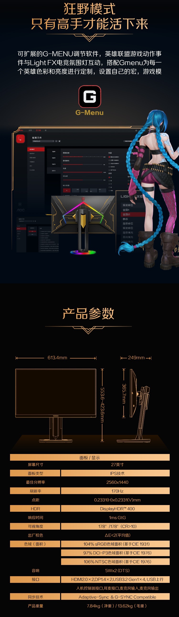 AOC 사랑 공격 및 영웅 동맹 공동 27 "2K 170Hz 빠른 LCD 1ms HDR400 에 적용 가능스토어 가기