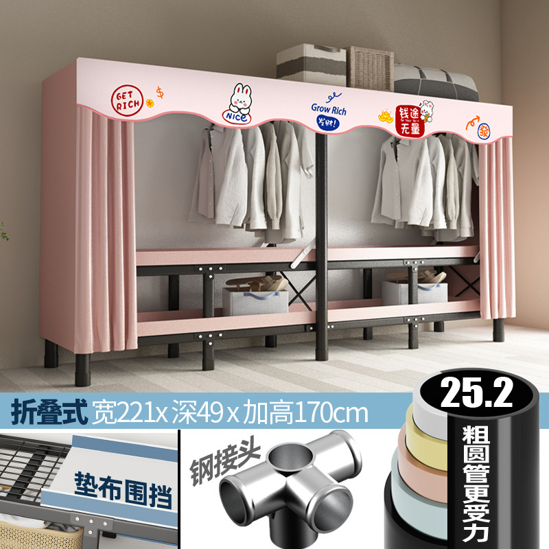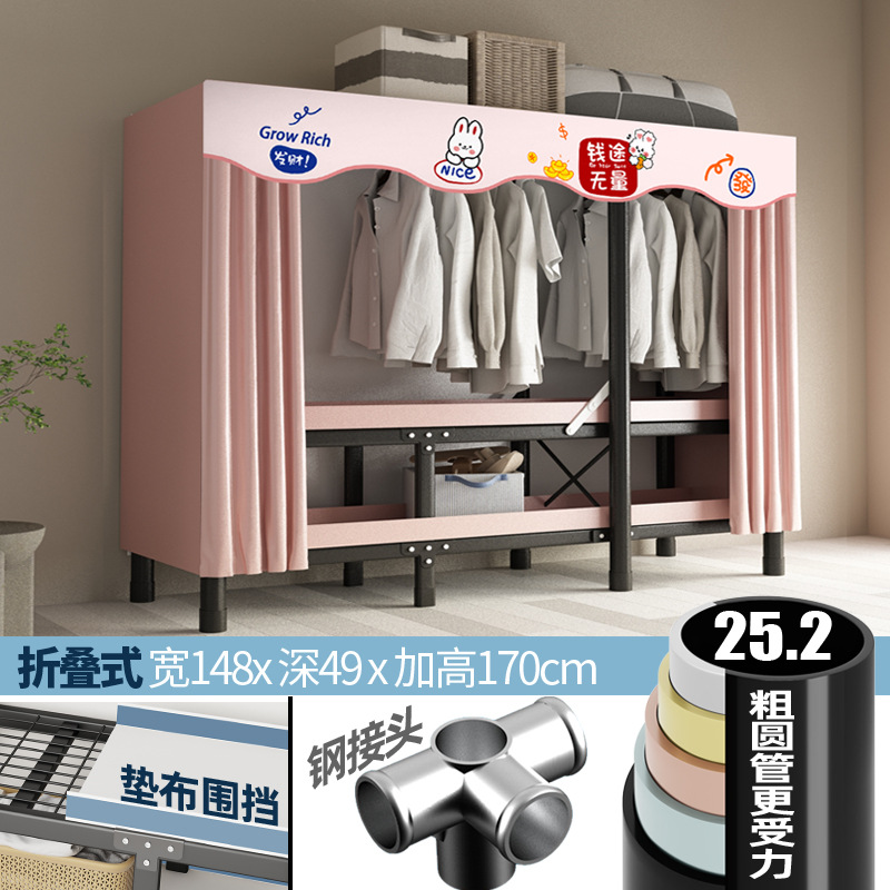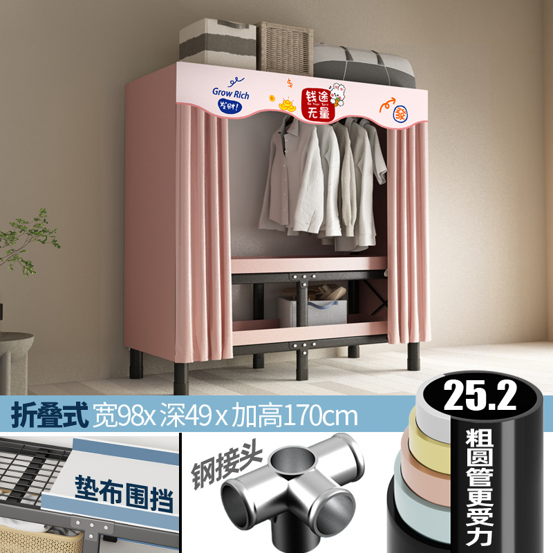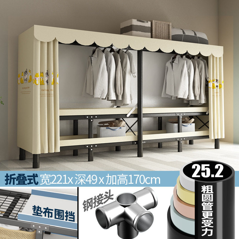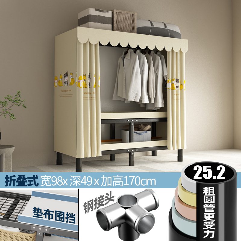 임대실을 위한 무설치 옷장 견고하고 튼튼한 가정용 침실 접이식 간단한 천 옷장 철골 수납 캐비닛 옷장스토어 가기