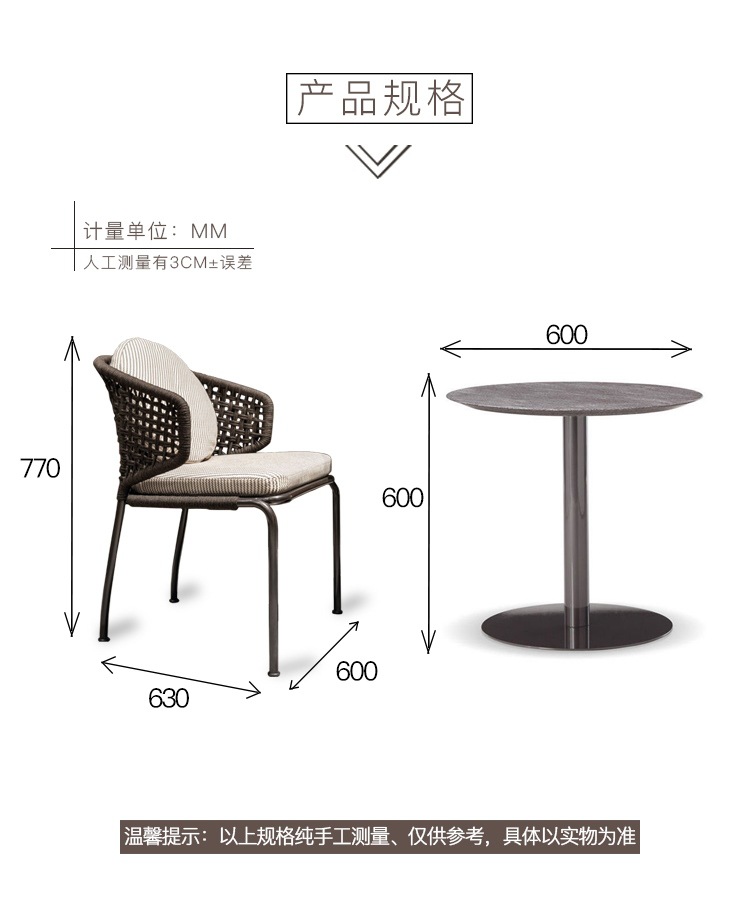야외 테이블 및 의자 발코니 정원 안뜰 빌라 호텔 레스토랑 고급 야외 등나무 가구 캐주얼 테이블과 의자 조합