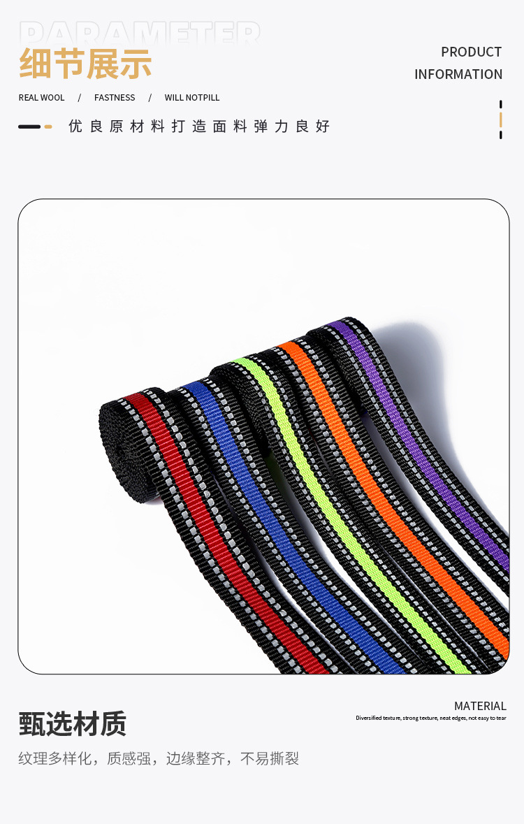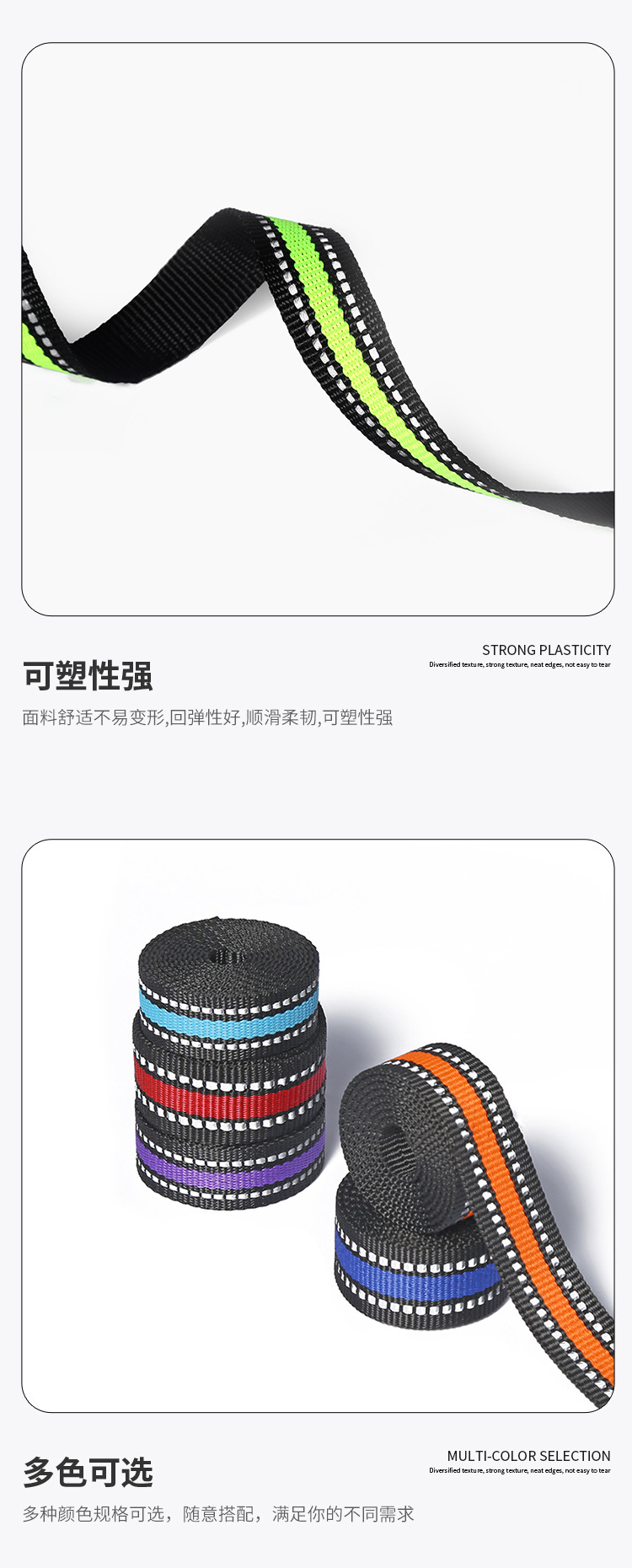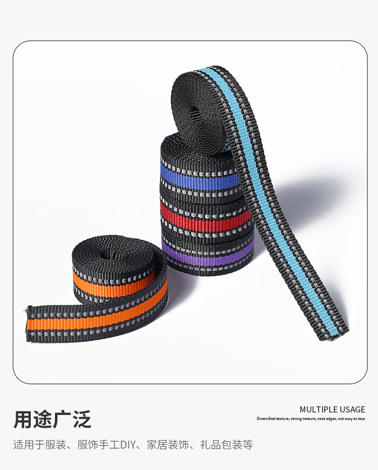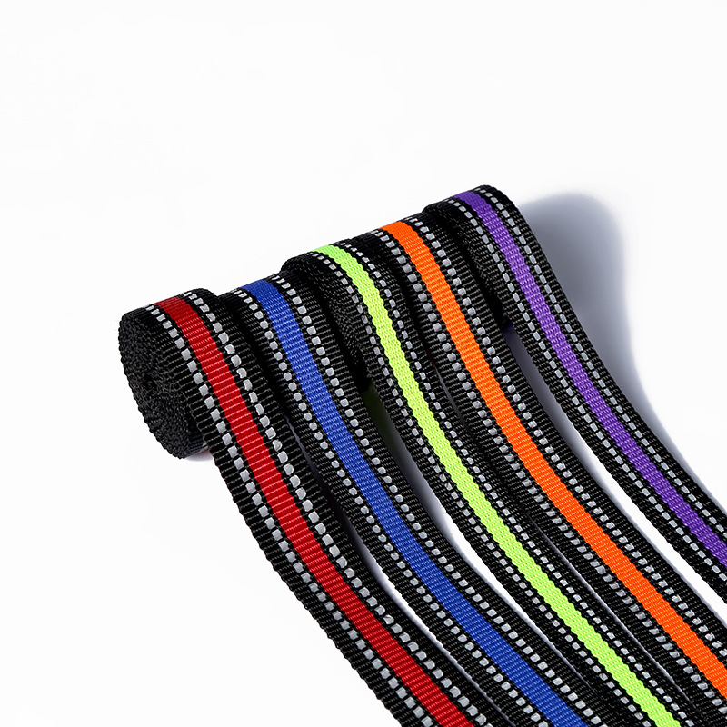 공장 직접 공급 얇은 색상 모방 나일론 웨빙 반사 스트립 애완 동물 칼라 견인 웨빙 백 어깨 끈