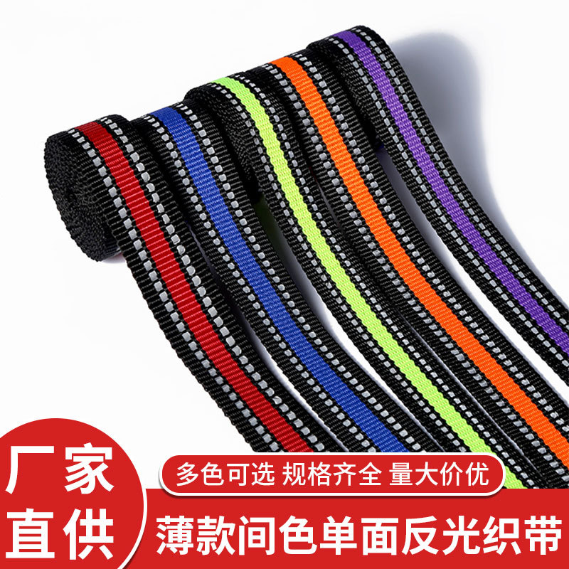 공장 직접 공급 얇은 색상 모방 나일론 웨빙 반사 스트립 애완 동물 칼라 견인 웨빙 백 어깨 끈스토어 가기
