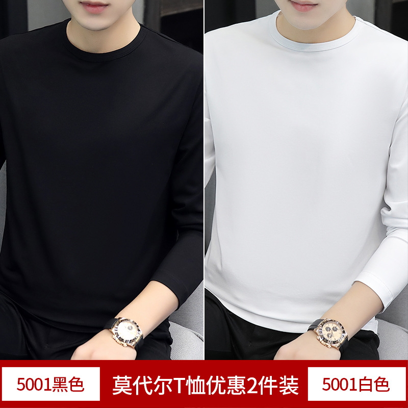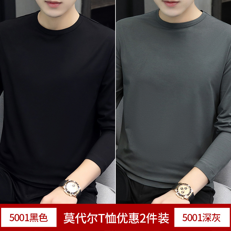 2024 년 여름 선스크린 새 모달 긴팔 티셔츠 남성용 솔리드 컬러베이스 셔츠 둥근 목 옷 십대