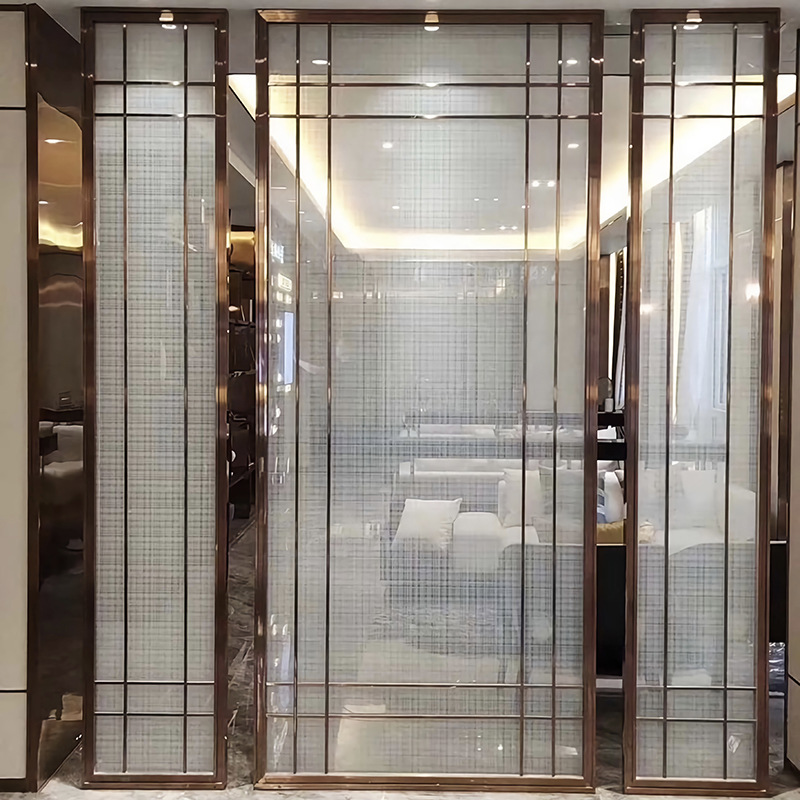 빌라 호텔 로비 배경 벽 금속 그릴 그라디언트 실크 아트 크리스탈 유리 스크린 파티션