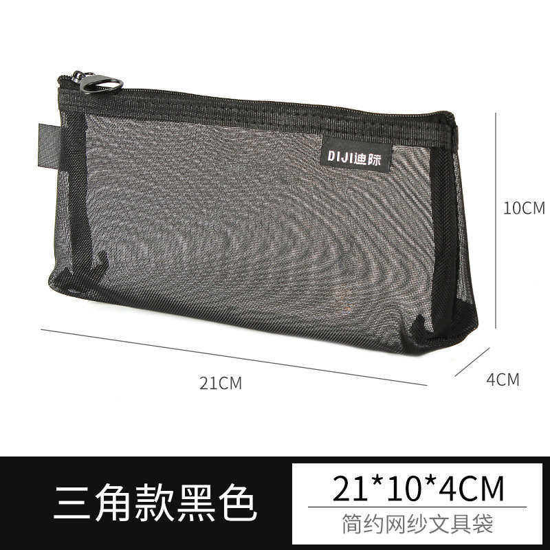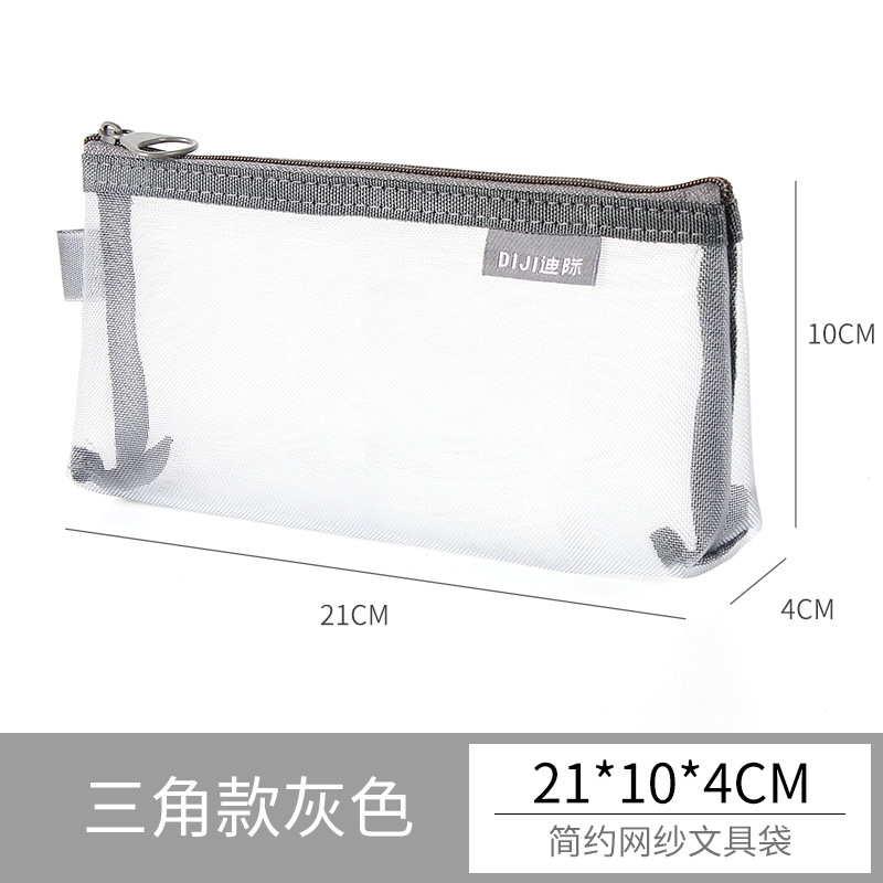 심플한 메쉬 연필 가방 삼각 입체 대용량 문구 가방 투명 나일론 메쉬 연필 가방 남녀 학생 시험