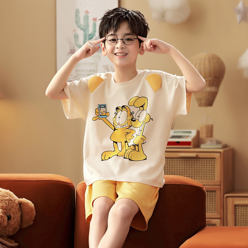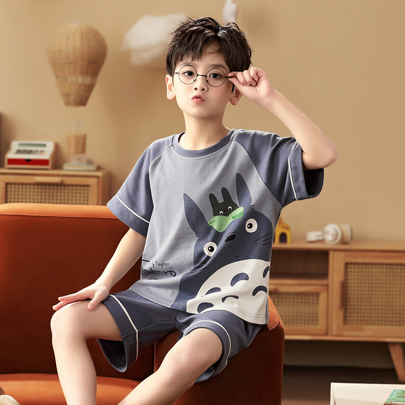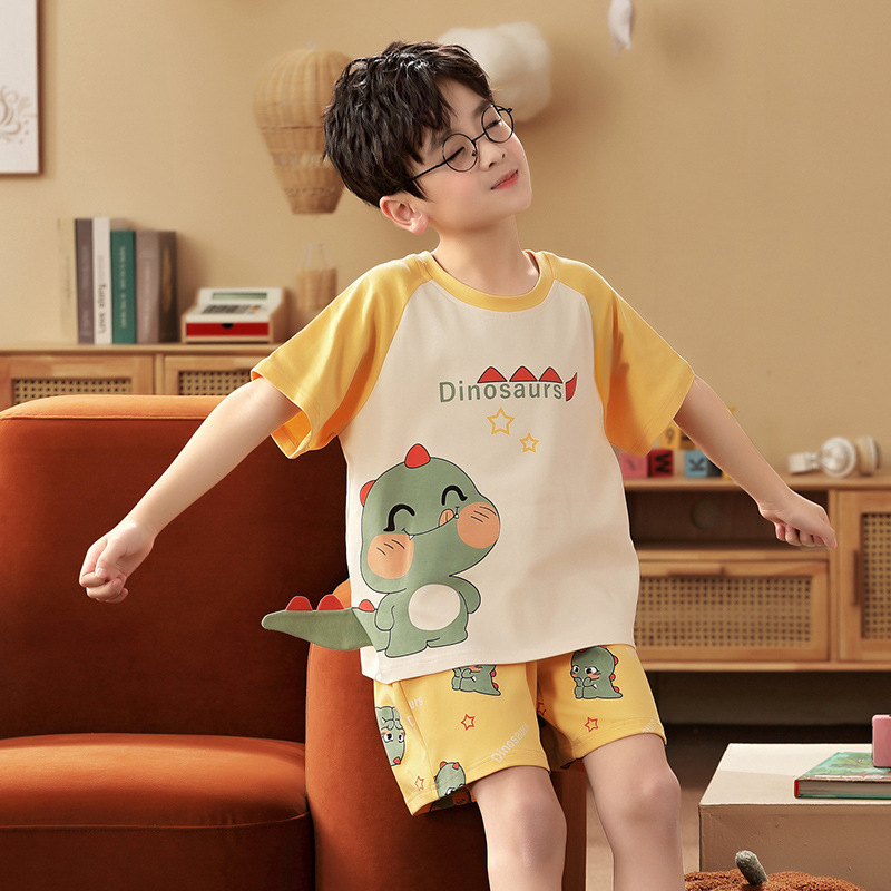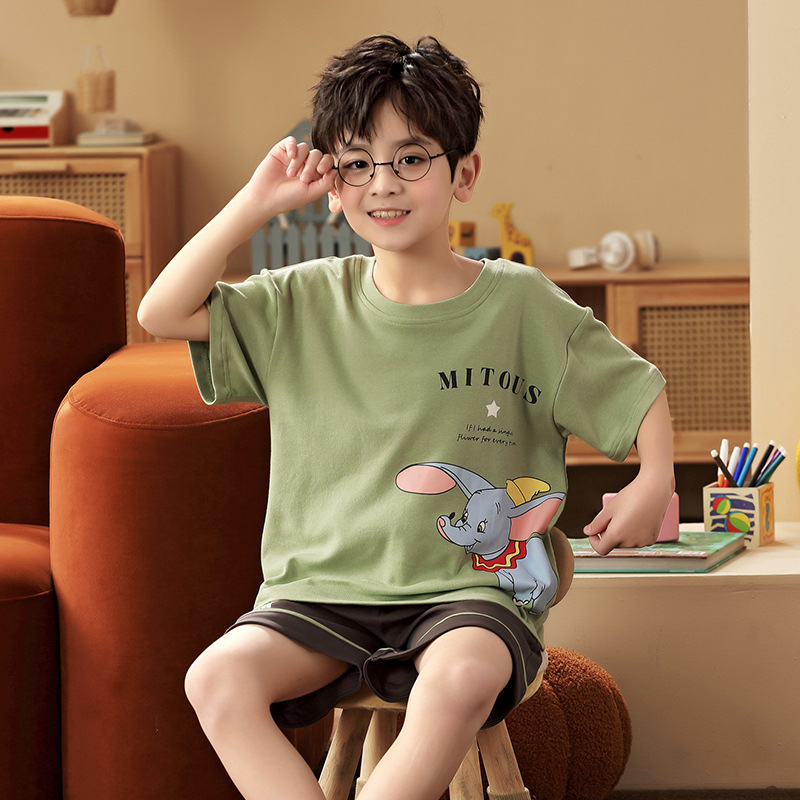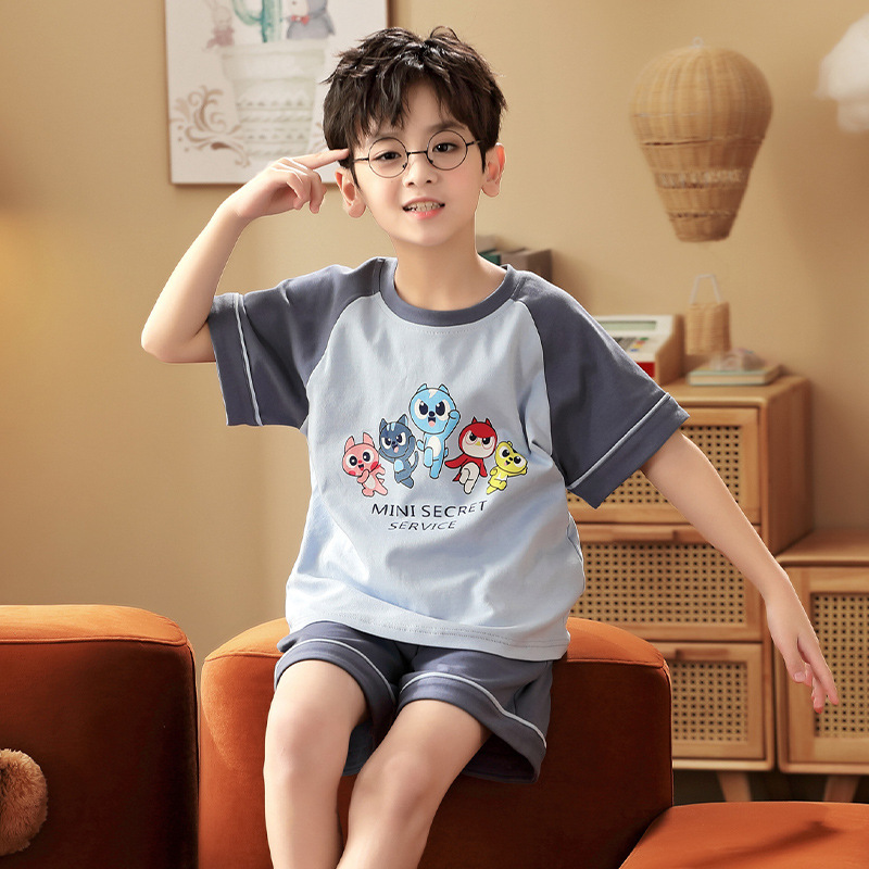 어린이 잠옷 순면 초등학생 아기 중간 및 큰 어린이를위한 여름 얇은 반팔 반바지 에어컨 의류 남아 가정복