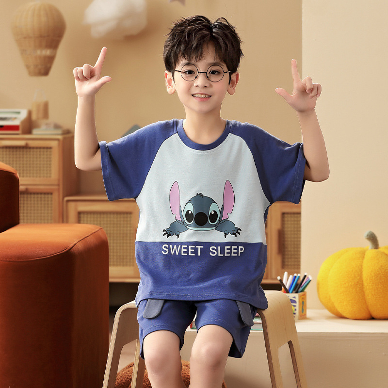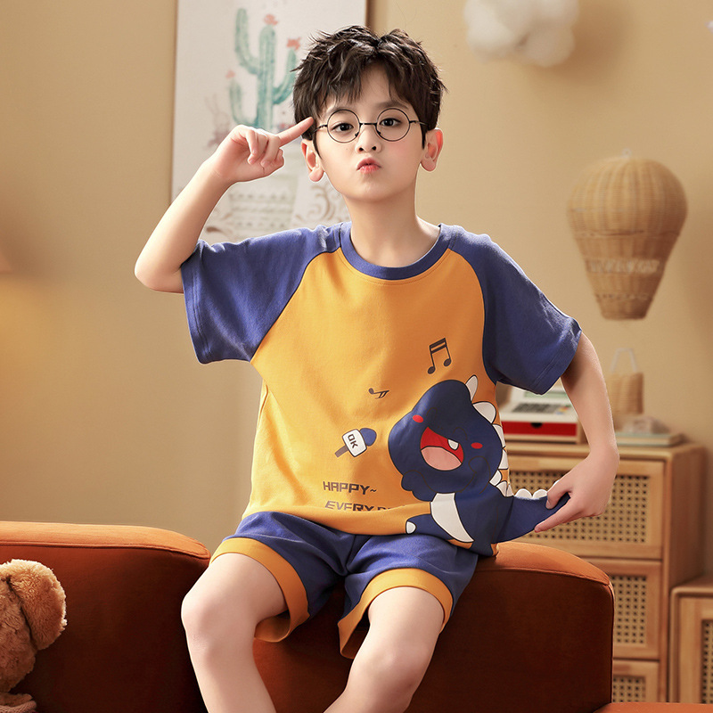 어린이 잠옷 순면 초등학생 아기 중간 및 큰 어린이를위한 여름 얇은 반팔 반바지 에어컨 의류 남아 가정복스토어 가기