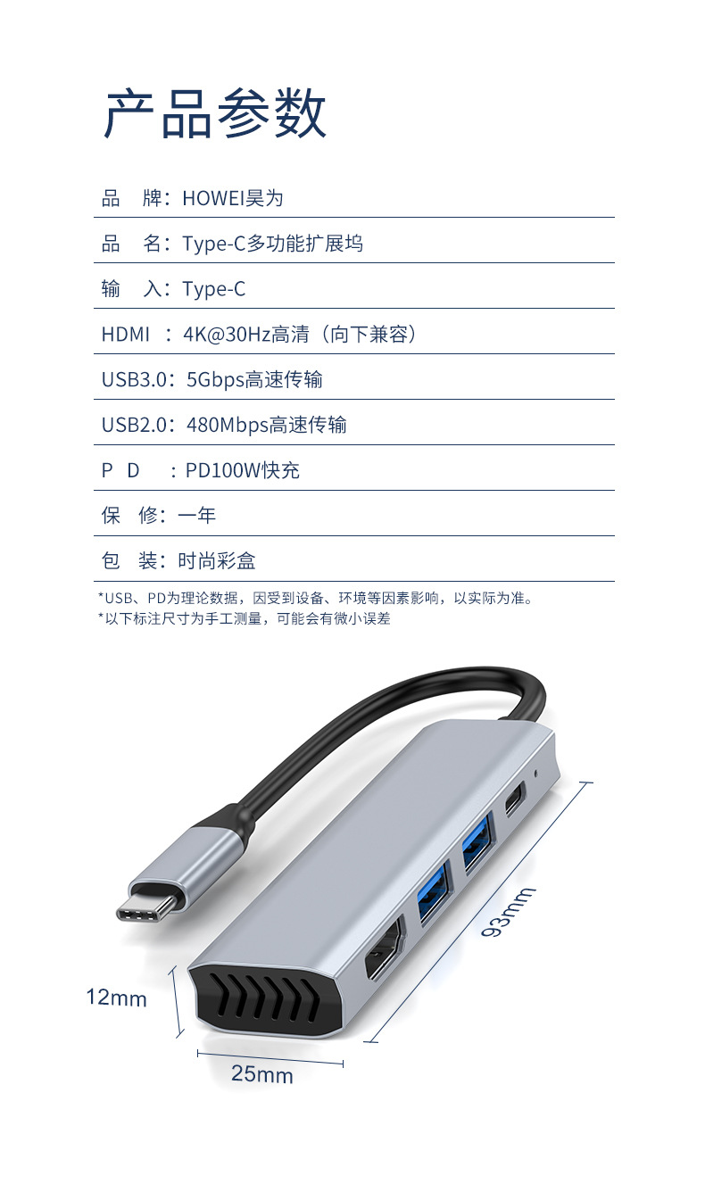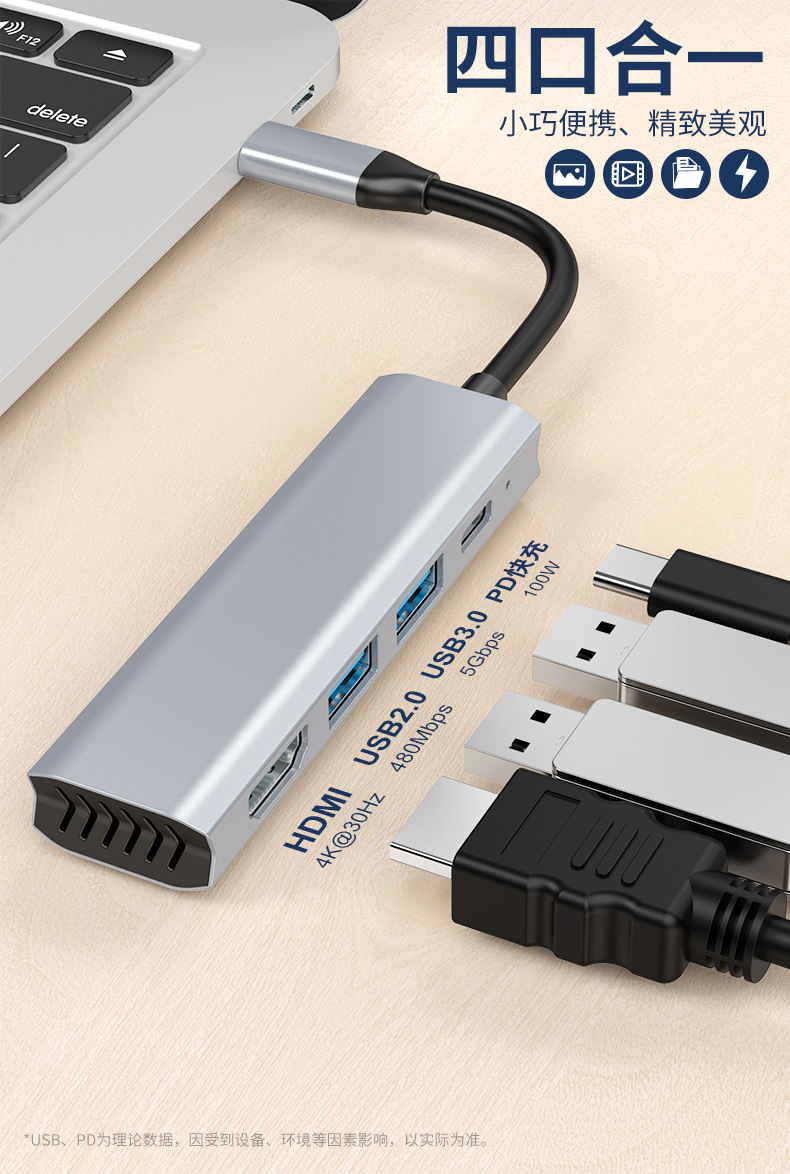 • HDMI + USB3.0 + USB2.0 + PD 4 대 1