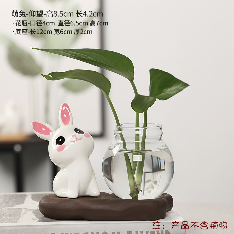만화 토끼 녹색 식물 수경재배 꽃병 가정 장식 사무실 책상 작은 토끼 책상 장식품 좋은 선물스토어 가기