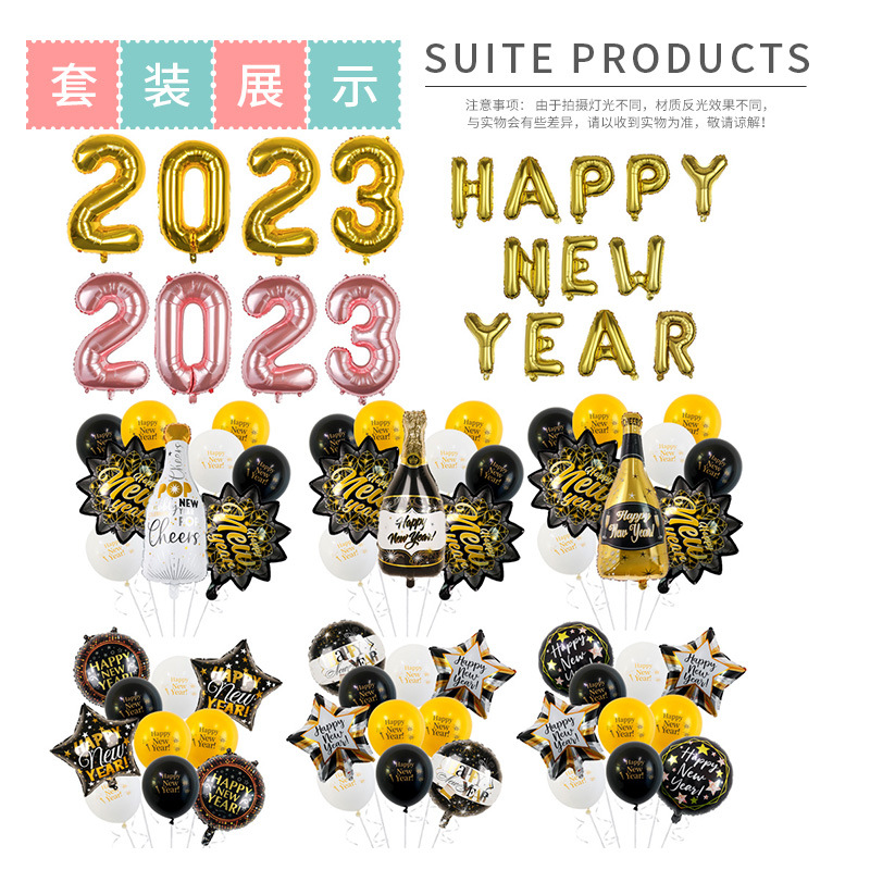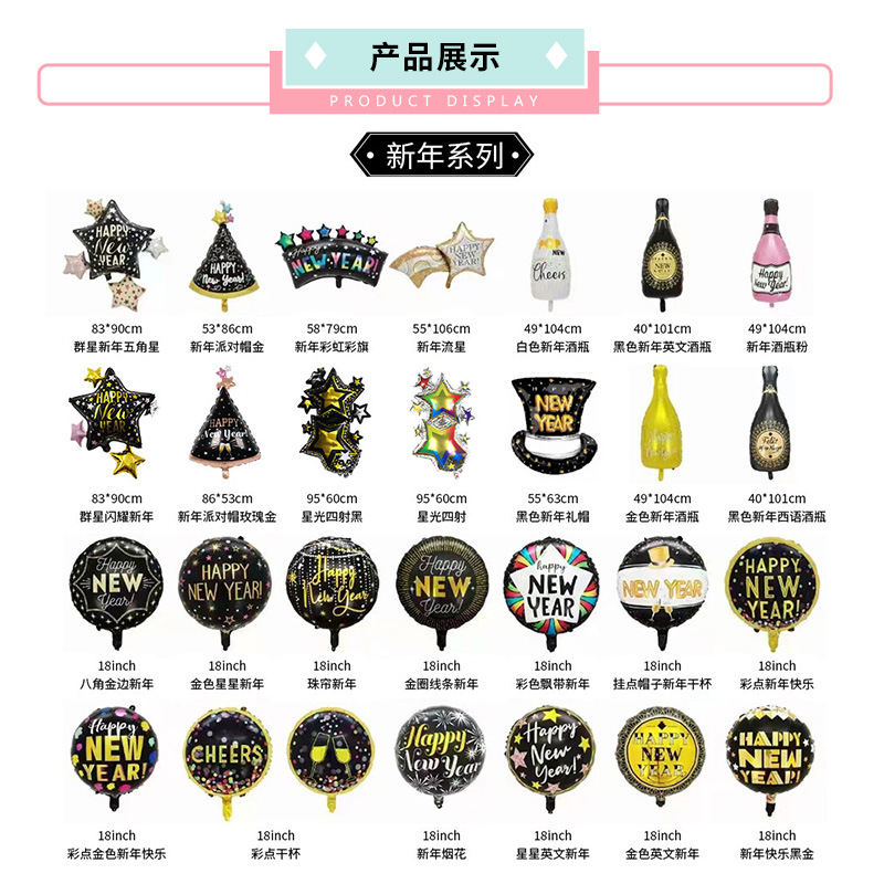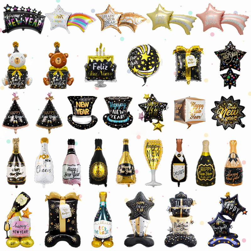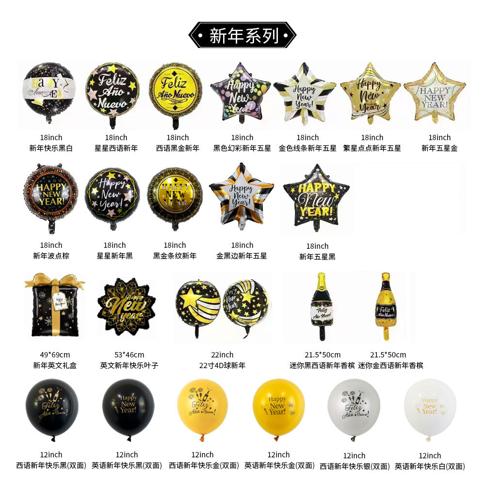 해외 인기 판매 신년 스타일 알루미늄 필름 풍선 해피 뉴 이어 테마 파티 장식 풍선스토어 가기