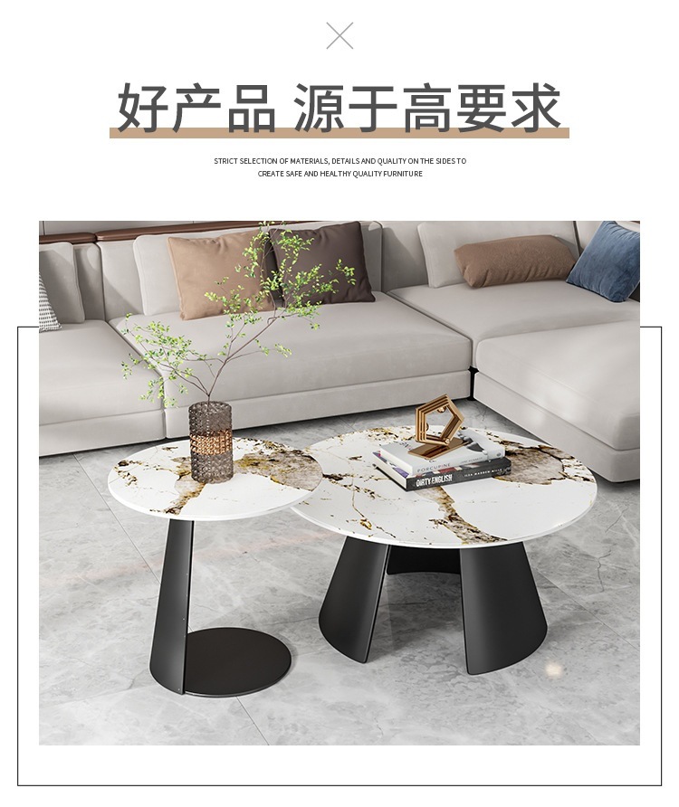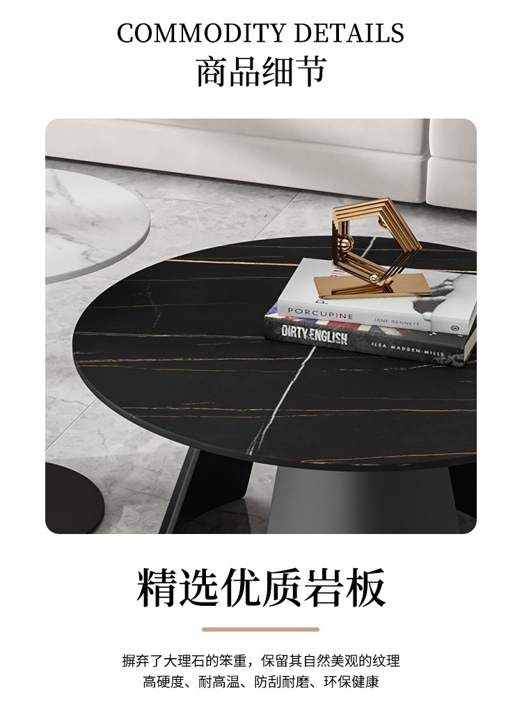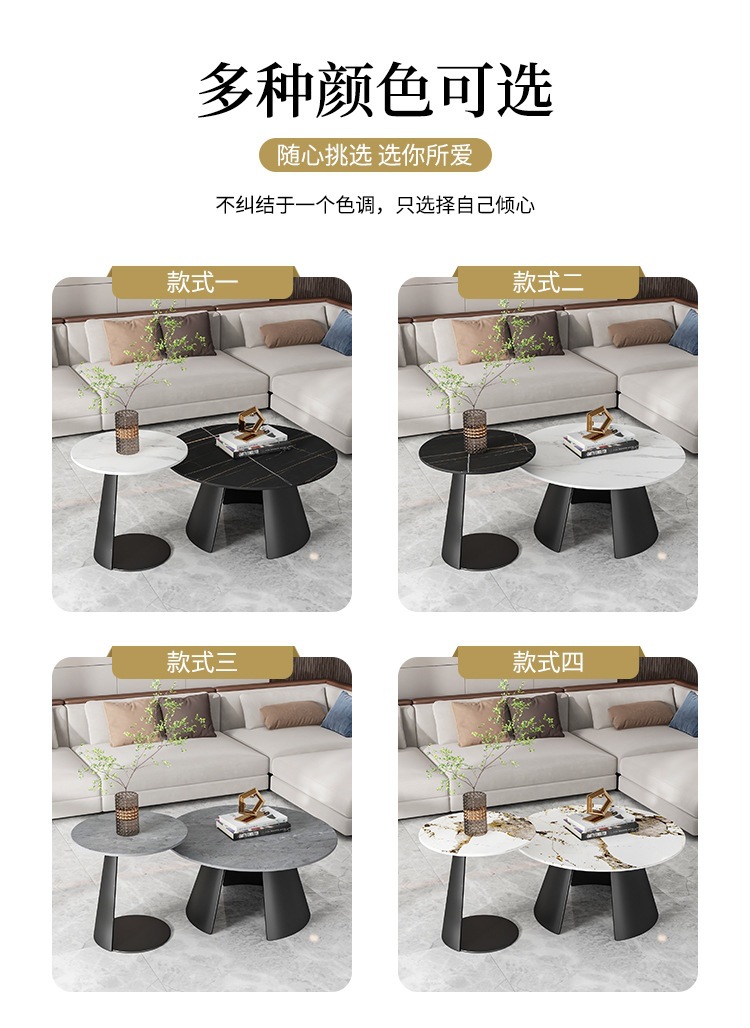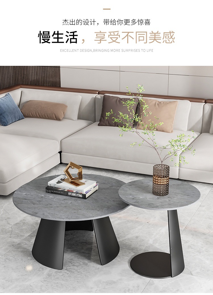 현대 간단한 바위 접시 원형 커피 테이블 가정용 테이블 사이드 테이블 조합 작은 아파트 거실 조명 럭셔리 대형 및 스몰 사이즈 원형 커피 테이블스토어 가기