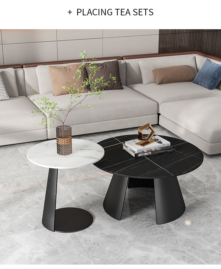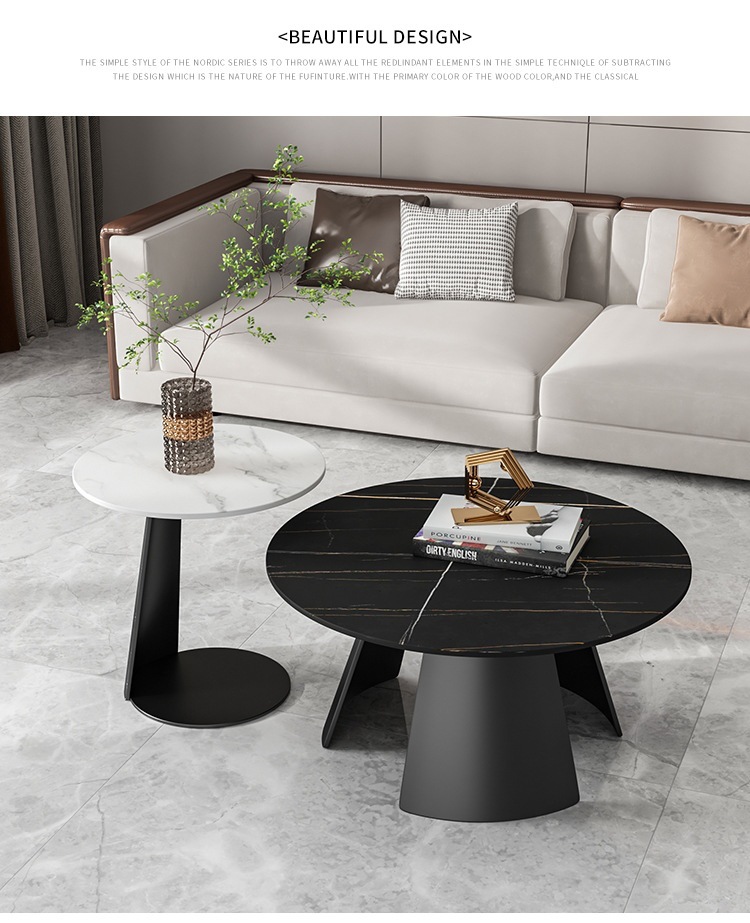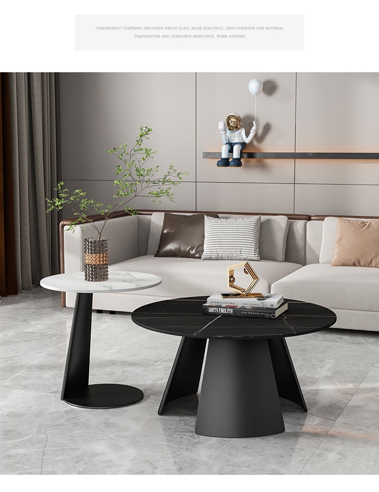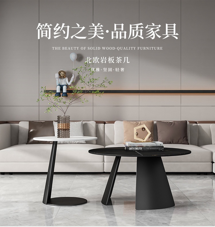 현대 간단한 바위 접시 원형 커피 테이블 가정용 테이블 사이드 테이블 조합 작은 아파트 거실 조명 럭셔리 대형 및 스몰 사이즈 원형 커피 테이블